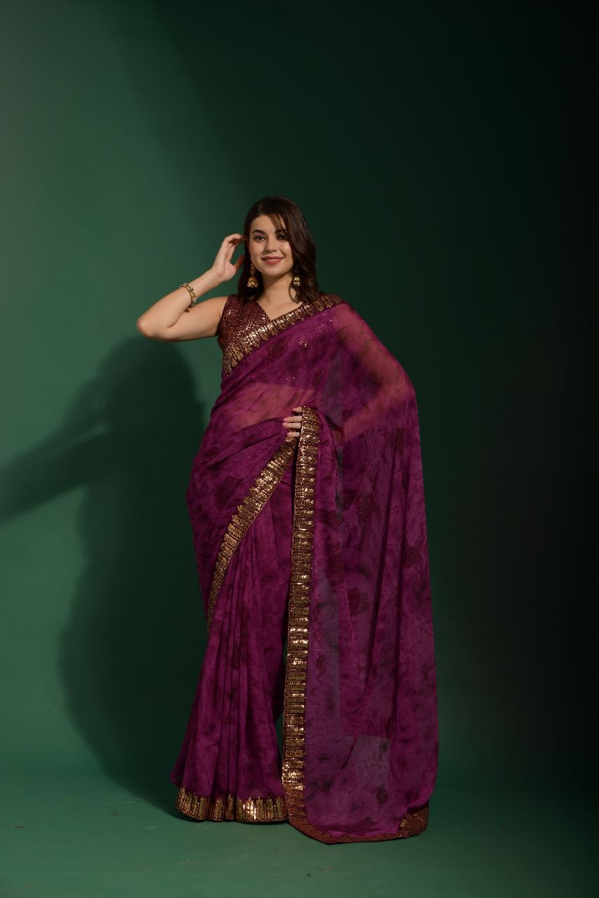 Mansuri Prijam Sequence Designer Border Sarees