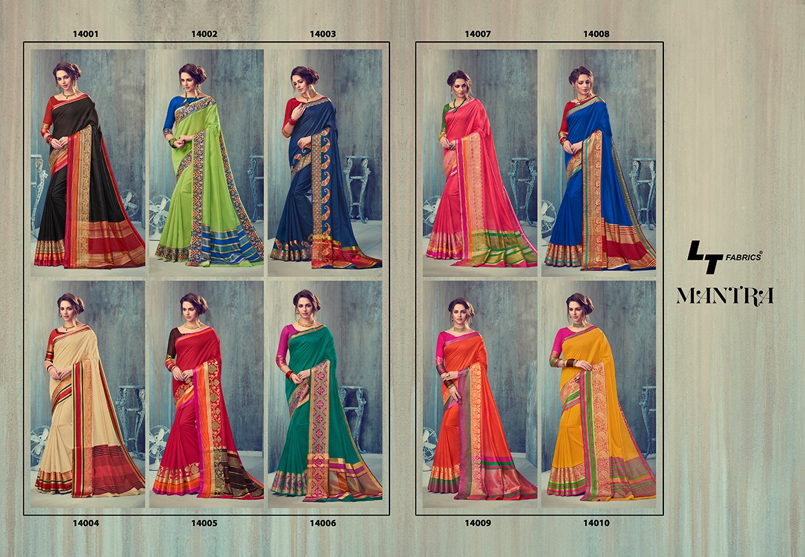 Brand - LT. Type - Saree. Catlog name - MANTRA . *L. T. FASHION SURAT* MANTRA Fabrics - TUSSER SILK RATE. - 625 per Pcs . Set to set . GST 5 Percent Extra. Delivery 2-3 days . |