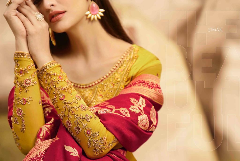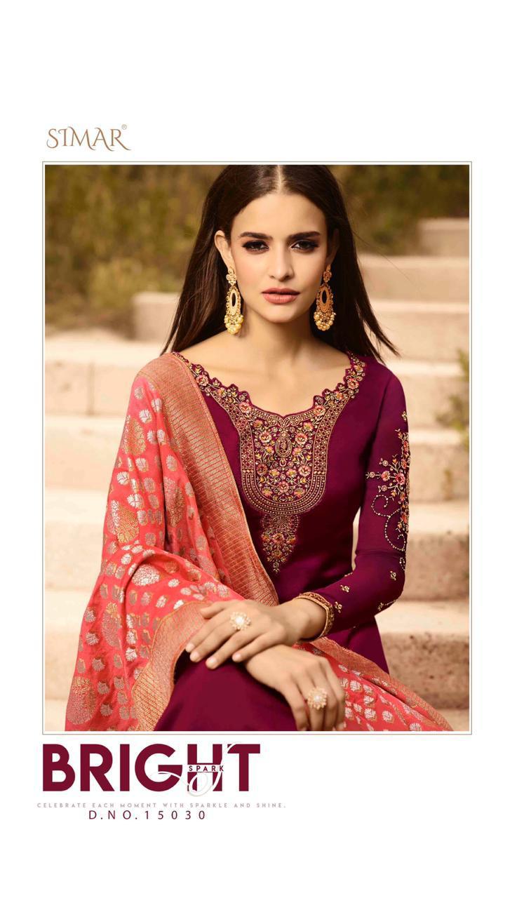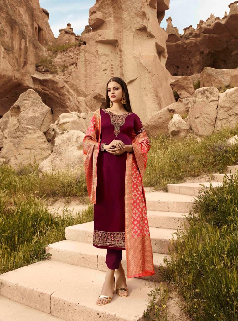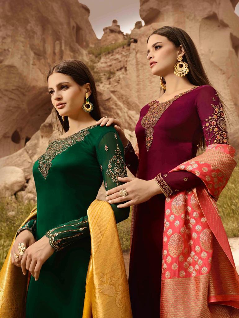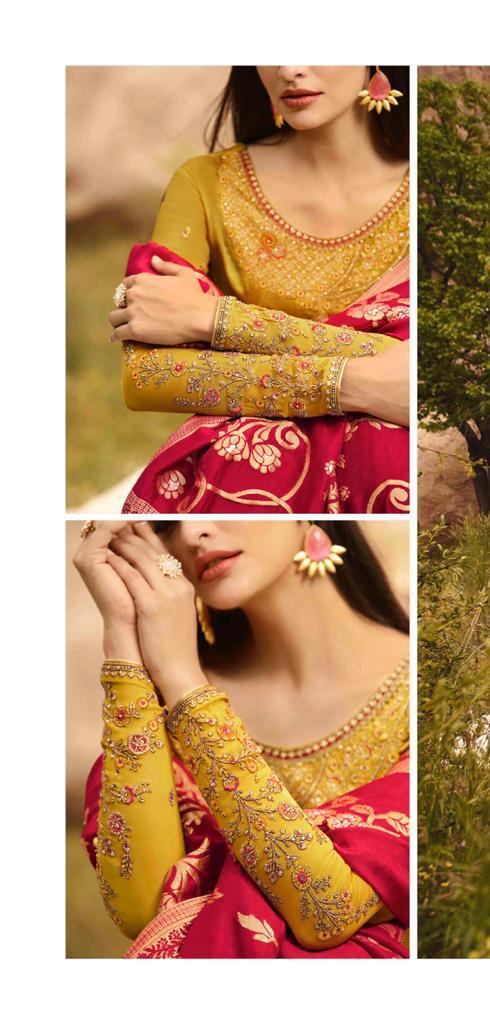 Brand - Gloosy. Catlog name - Manya . Catlog series - 15030 to 15035. Set & Loose. Rate -1895 per Pcs . Single extra ? GST 5 Percent Extra. ********************** Fabric- Satin Gorgett . Duppta- Pure Dolla Silk . Inner & Bottom - Santoon . .......................................... Delivery 3-4 days |
