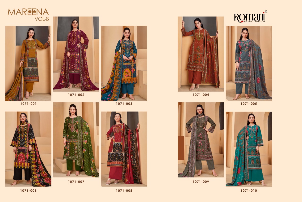 Buy Online Mareena Vol 8 By Romani Cotton Digital Style Print Suit 10 Pcs of Full Catalogue at Wholesale Price. Looking for Mareena Vol 8 By Romani Cotton Digital Style Print Suit Full Catalouge at Best Price? Buy Now Mareena Vol 8 By Romani Cotton Digital Style Print Suit at Wholesale Rate of Rs 3510 with Total 10 Pcs from authroized dealer and supplier of Brand. Cost of Each piece is just only Rs 351 which is very low and affordable price to resale the product in your retail store ,This is Surat based Wholesale Supplier & Dealer of Brand. Click on Brand name to Know more about Brand's products.Call or Whatsapp on 9898838984 for booking or enquiry