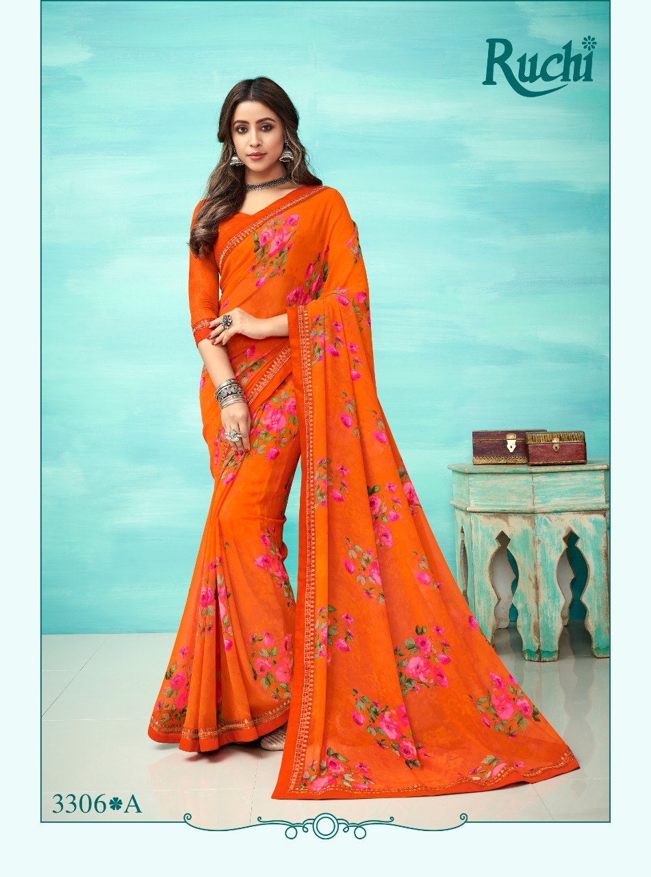 Greetings, Ruchi Sarees 1). Catalog- MariGold. 2). Fabric- Saree(Pure Georgette), Blouse ( Cotton Silk), Broder (work embroidery) 3). Pcs. - 12. 4). Setwise Packing only. 5). Rate- 835 per pcs . GST 5 Percent Extra. Delivery 2 days |