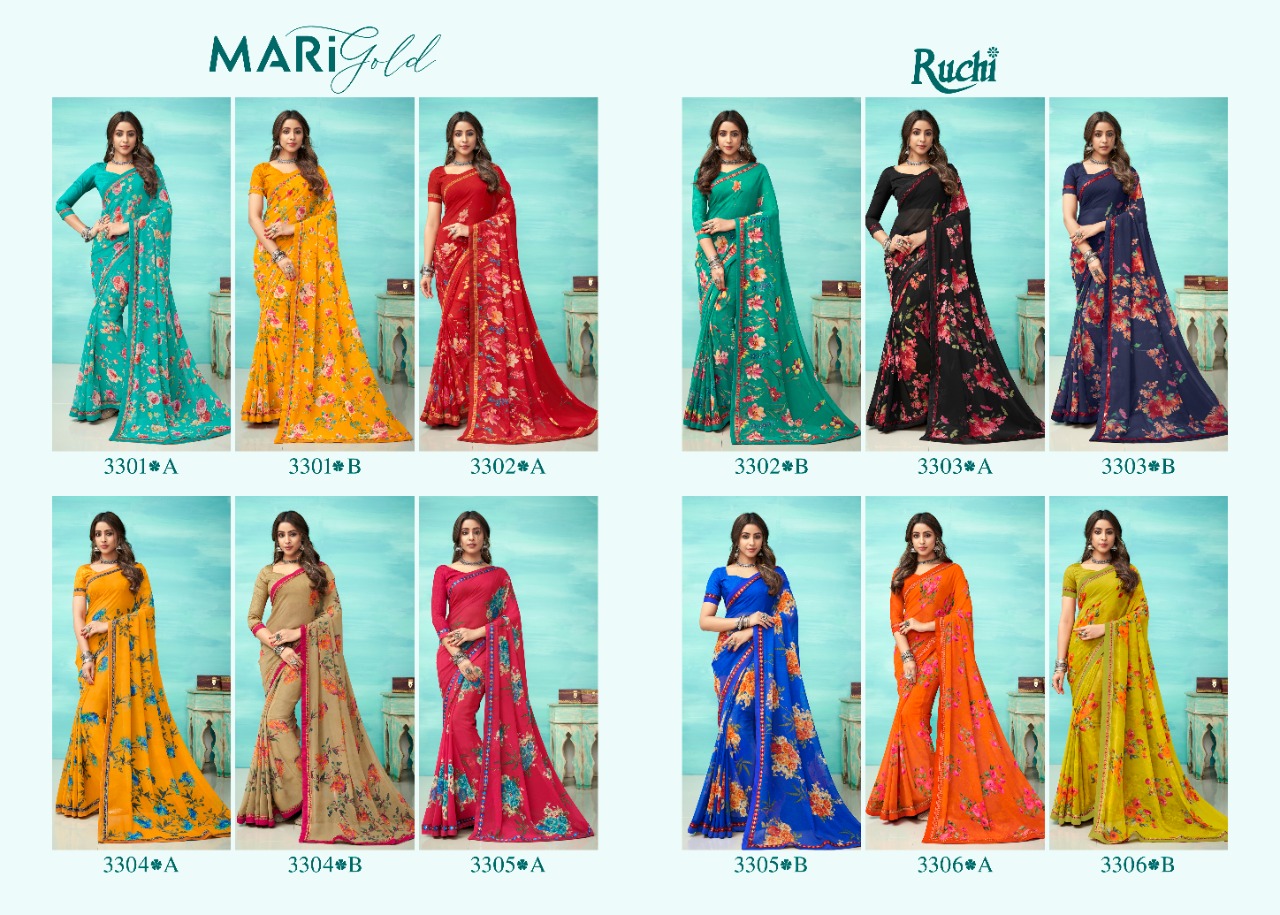 Buy Online Mari Gold By Ruchi Saree Wholesale Supplier Traders In Surat 12 Pcs of Full Catalogue at Wholesale Price. Looking for Mari Gold By Ruchi Saree Wholesale Supplier Traders In Surat Full Catalouge at Best Price? Buy Now Mari Gold By Ruchi Saree Wholesale Supplier Traders In Surat at Wholesale Rate of Rs 10020 with Total 12 Pcs from authroized dealer and supplier of RUCHI SAREE Brand. Cost of Each piece is just only Rs 835 which is very low and affordable price to resale the product in your retail store ,This is Surat based Wholesale Supplier & Dealer of RUCHI SAREE Brand. Click on Brand name to Know more about RUCHI SAREE Brand's products.Call or Whatsapp on 9898838984 for booking or enquiry