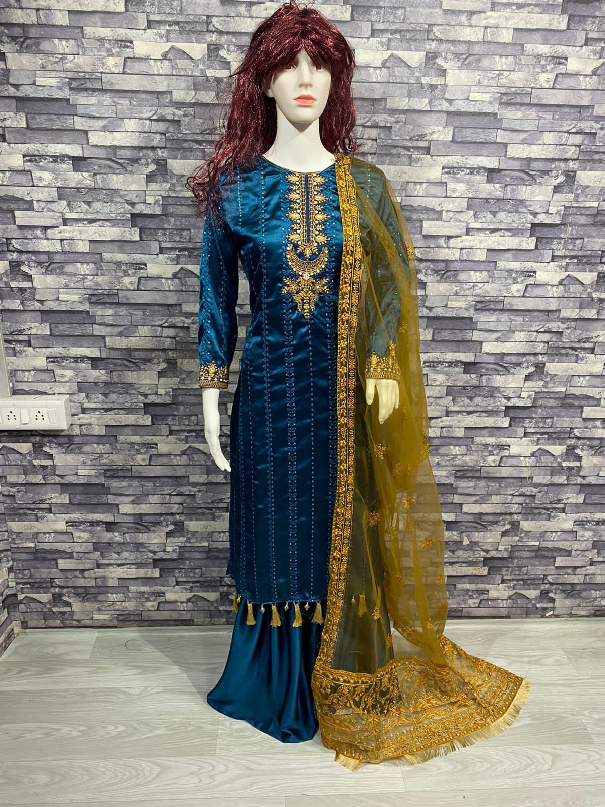 *Mariab satin by DEEPSY SUITS* Top - Pure satin silk With embroidery Bot - Santoon Dup -Net with embroidery/ tabby silk digital print Rate: 1099+Gst *_Quilted Fabric Used For best quality results_* |