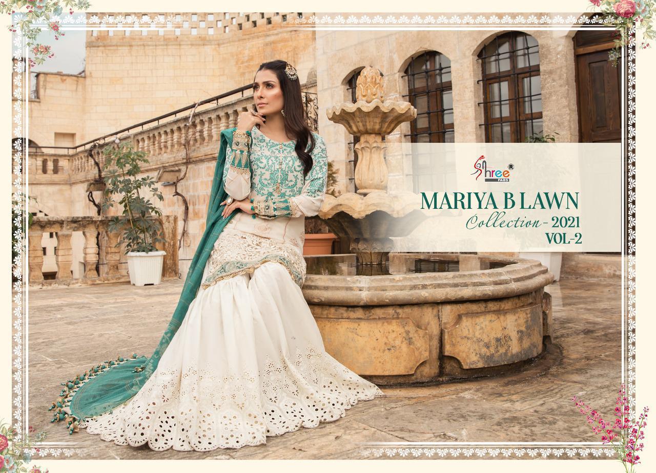 Buy Online Maria B Lawn Collection Vol 2 By Shree Fabs Dealer And Exporter Surat 8 Pcs of Full Catalogue at Wholesale Price. Looking for Maria B Lawn Collection Vol 2 By Shree Fabs Dealer And Exporter Surat Full Catalouge at Best Price? Buy Now Maria B Lawn Collection Vol 2 By Shree Fabs Dealer And Exporter Surat at Wholesale Rate of Rs 8400 with Total 8 Pcs from authroized dealer and supplier of SHREE FABS Brand. Cost of Each piece is just only Rs 1050 which is very low and affordable price to resale the product in your retail store ,This is Surat based Wholesale Supplier & Dealer of SHREE FABS Brand. Click on Brand name to Know more about SHREE FABS Brand's products.Call or Whatsapp on 9898838984 for booking or enquiry