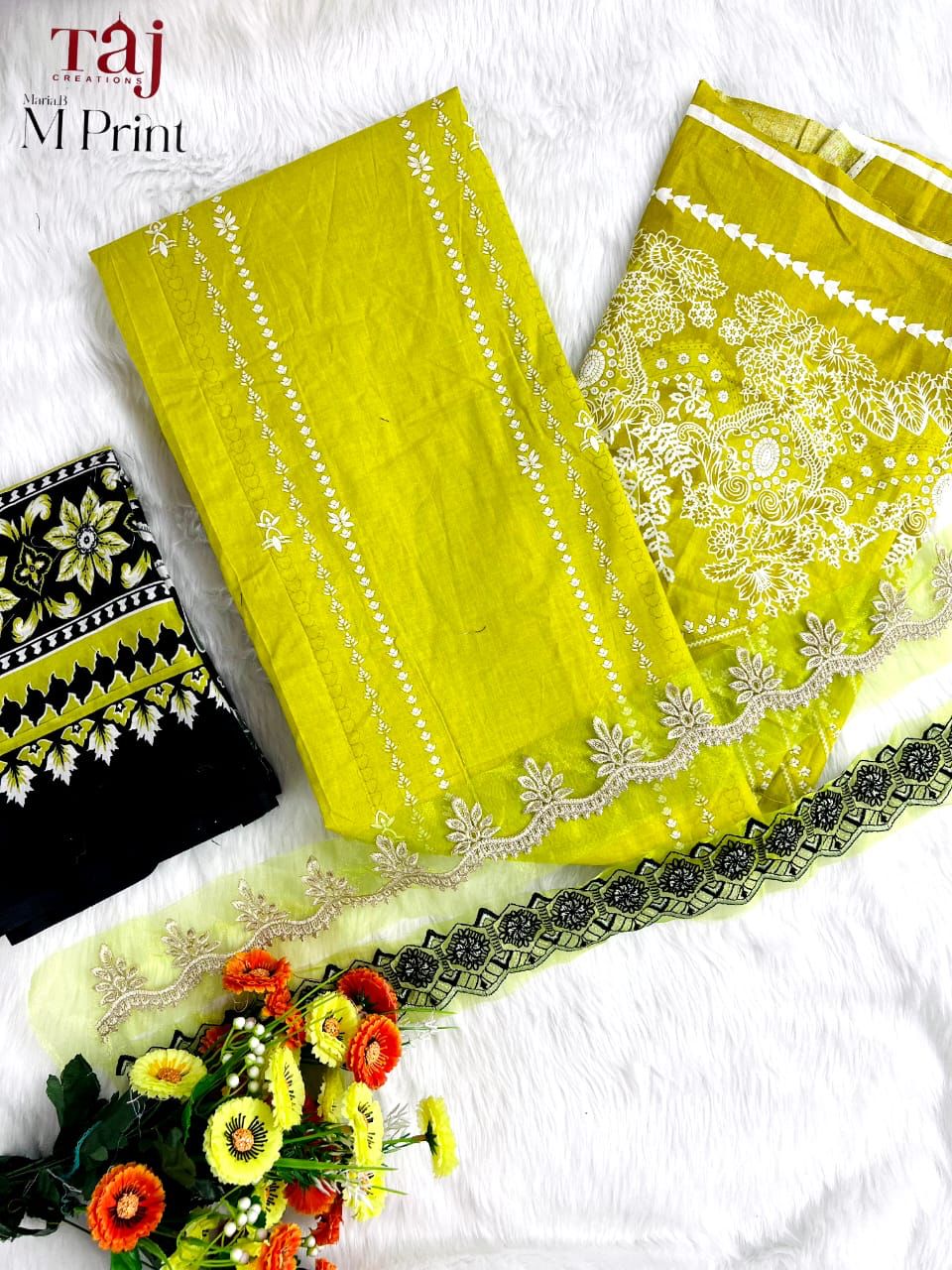 Buy Online Maria B M Print Design 411 By Taj Creation 5 Pcs of Full Catalogue at Wholesale Price. Looking for Maria B M Print Design 411 By Taj Creation Full Catalouge at Best Price? Buy Now Maria B M Print Design 411 By Taj Creation at Wholesale Rate of Rs 2750 with Total 5 Pcs from authroized dealer and supplier of Brand. Cost of Each piece is just only Rs 550 which is very low and affordable price to resale the product in your retail store ,This is Surat based Wholesale Supplier & Dealer of Brand. Click on Brand name to Know more about Brand's products.Call or Whatsapp on 9898838984 for booking or enquiry
