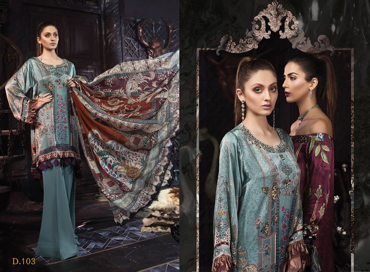 Buy Online Maria B Silk Collection By Lavisha 101 Series Fancy Modal Silk Digital Printed Salwar Kameez Catlog Wholesaler Surat 6 Pcs of Full Catalogue at Wholesale Price. Looking for Maria B Silk Collection By Lavisha 101 Series Fancy Modal Silk Digital Printed Salwar Kameez Catlog Wholesaler Surat Full Catalouge at Best Price? Buy Now Maria B Silk Collection By Lavisha 101 Series Fancy Modal Silk Digital Printed Salwar Kameez Catlog Wholesaler Surat at Wholesale Rate of Rs 4770 with Total 6 Pcs from authroized dealer and supplier of LEVISHA Brand. Cost of Each piece is just only Rs 795 which is very low and affordable price to resale the product in your retail store ,This is Surat based Wholesale Supplier & Dealer of LEVISHA Brand. Click on Brand name to Know more about LEVISHA Brand's products.Call or Whatsapp on 9898838984 for booking or enquiry