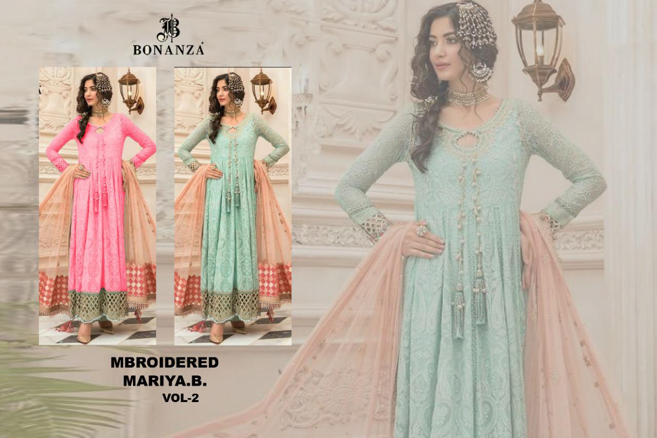 ??Dear Sir/Madam... Thanks for your support.? ?Today *BONAZA (volono)* hitting market again with exclusively trending series of pakistani *concepts*. *****Maria b vol 2** COLORS***** ??Fabric details ?? ? Top : Fox jorjet & Tussle with Heavy Embroidery ?Bottom inner- Heavy Dul Shantun ?Dupatta : Net With havy embroidery work ?Price : ? 1199/+ *GST* ?2 pcs |