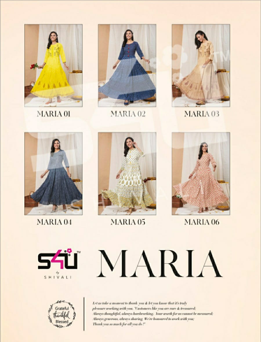 *Brand :* S4U *Catalog Name :* Maria *Price :* ?831 *Piece :* 6 *Total Price :* 4986 ( GST Extra ) *Size :* M,L,XL,XXL *Fabric :* fency *Availibility :* On Booking Set to set |