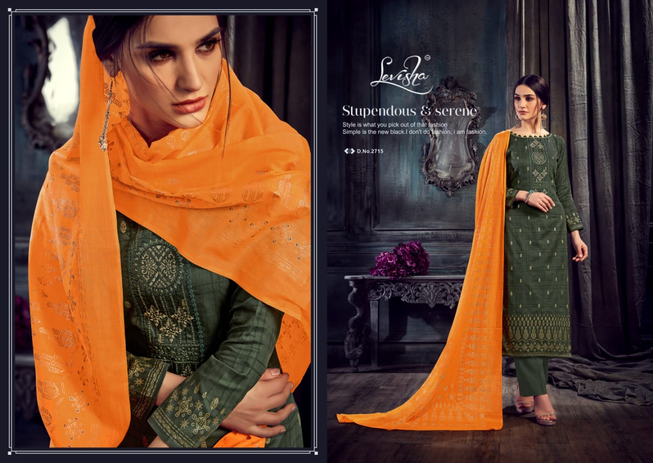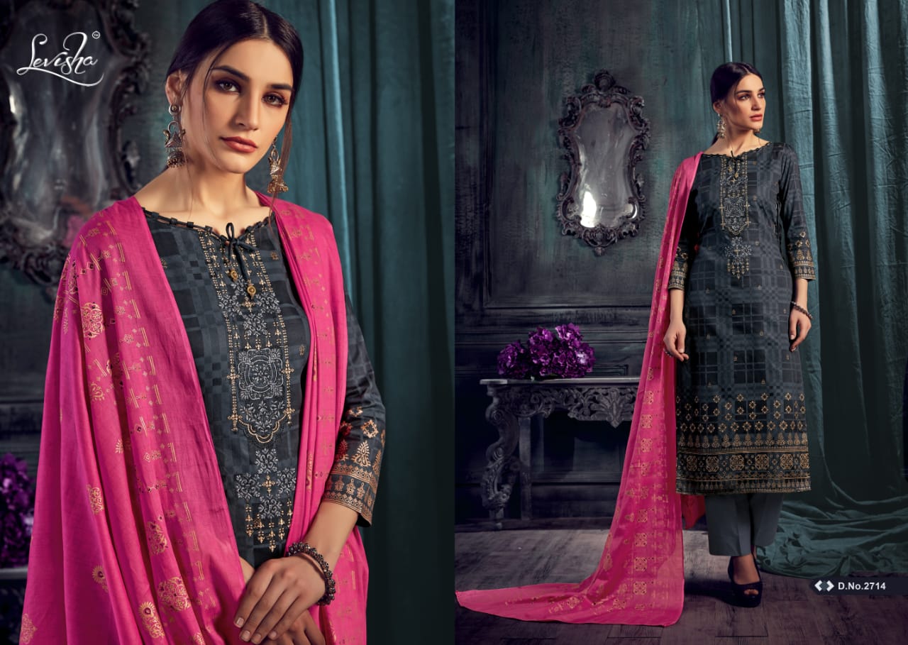 Buy Online Marina Gold By Levisha 2713 Series Fancy Jam Silk Salwar Kameez Catlog Wholesaler Surat 8 Pcs of Full Catalogue at Wholesale Price. Looking for Marina Gold By Levisha 2713 Series Fancy Jam Silk Salwar Kameez Catlog Wholesaler Surat Full Catalouge at Best Price? Buy Now Marina Gold By Levisha 2713 Series Fancy Jam Silk Salwar Kameez Catlog Wholesaler Surat at Wholesale Rate of Rs 5288 with Total 8 Pcs from authroized dealer and supplier of LEVISHA Brand. Cost of Each piece is just only Rs 661 which is very low and affordable price to resale the product in your retail store ,This is Surat based Wholesale Supplier & Dealer of LEVISHA Brand. Click on Brand name to Know more about LEVISHA Brand's products.Call or Whatsapp on 9898838984 for booking or enquiry