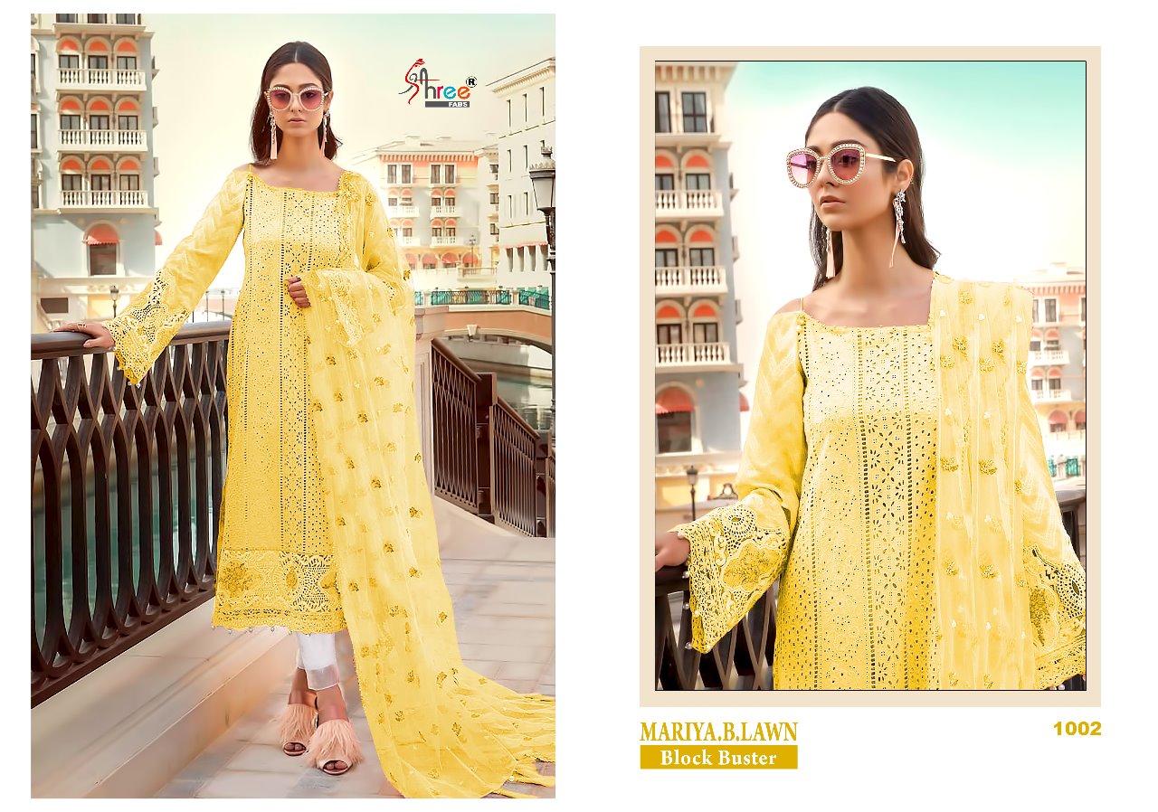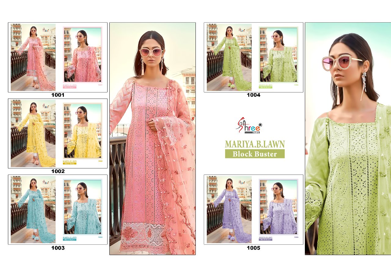Buy Online Mariya B Lawn Block Buster By Shree Fabs Series 1001 To 1002 Pakistani Style Party Wear Suits Wholesale Supplier And Dealer India 5 Pcs of Full Catalogue at Wholesale Price. Looking for Mariya B Lawn Block Buster By Shree Fabs Series 1001 To 1002 Pakistani Style Party Wear Suits Wholesale Supplier And Dealer India Full Catalouge at Best Price? Buy Now Mariya B Lawn Block Buster By Shree Fabs Series 1001 To 1002 Pakistani Style Party Wear Suits Wholesale Supplier And Dealer India at Wholesale Rate of Rs 4995 with Total 5 Pcs from authroized dealer and supplier of SHREE FABS Brand. Cost of Each piece is just only Rs 999 which is very low and affordable price to resale the product in your retail store ,This is Surat based Wholesale Supplier & Dealer of SHREE FABS Brand. Click on Brand name to Know more about SHREE FABS Brand's products.Call or Whatsapp on 9898838984 for booking or enquiry