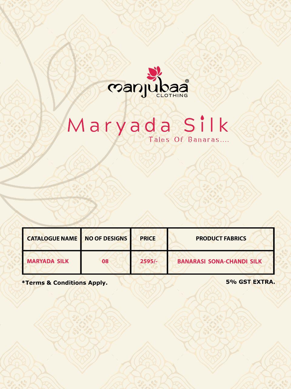 Brand - Manjuba. Catlog name - Maryada Silk . Series - 2501 to 2508. Rate -2595 per pcs . Single extra 100 * set & loose & Singel & Multiplue* Delivery from today |