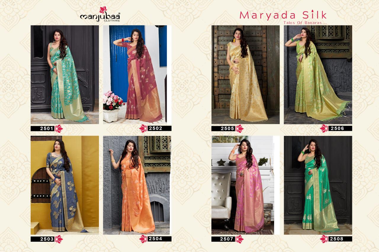 Maryada Silk By Manjubaa Series 2501 To 2508 Silk Designer Occasion Wear Sarees Set And Single Wholesale Supplier And Dealer India