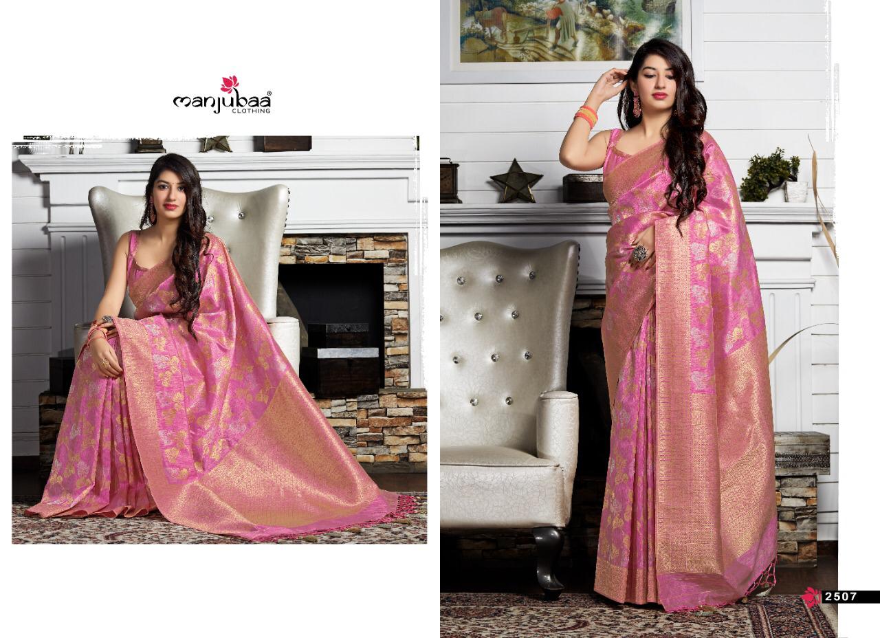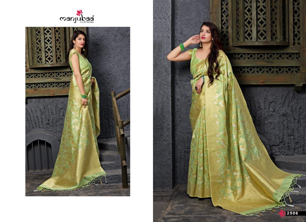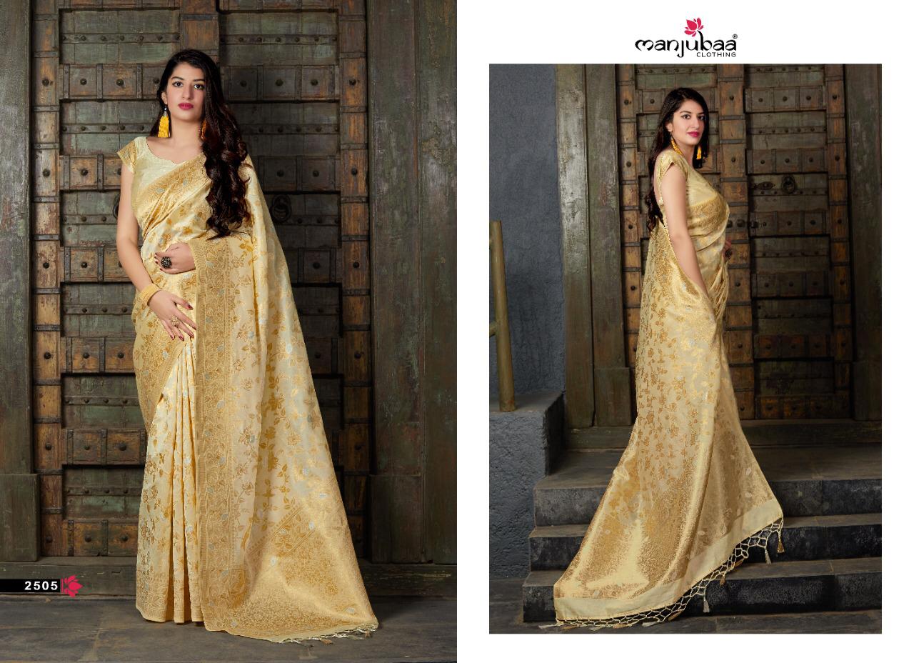 Buy Online Maryada Silk By Manjubaa Series 2501 To 2508 Silk Designer Occasion Wear Sarees Set And Single Wholesale Supplier And Dealer India 8 Pcs of Full Catalogue at Wholesale Price. Looking for Maryada Silk By Manjubaa Series 2501 To 2508 Silk Designer Occasion Wear Sarees Set And Single Wholesale Supplier And Dealer India Full Catalouge at Best Price? Buy Now Maryada Silk By Manjubaa Series 2501 To 2508 Silk Designer Occasion Wear Sarees Set And Single Wholesale Supplier And Dealer India at Wholesale Rate of Rs 20760 with Total 8 Pcs from authroized dealer and supplier of Manjubaa Clothing Brand. Cost of Each piece is just only Rs 2595 which is very low and affordable price to resale the product in your retail store ,This is Surat based Wholesale Supplier & Dealer of Manjubaa Clothing Brand. Click on Brand name to Know more about Manjubaa Clothing Brand's products.Call or Whatsapp on 9898838984 for booking or enquiry