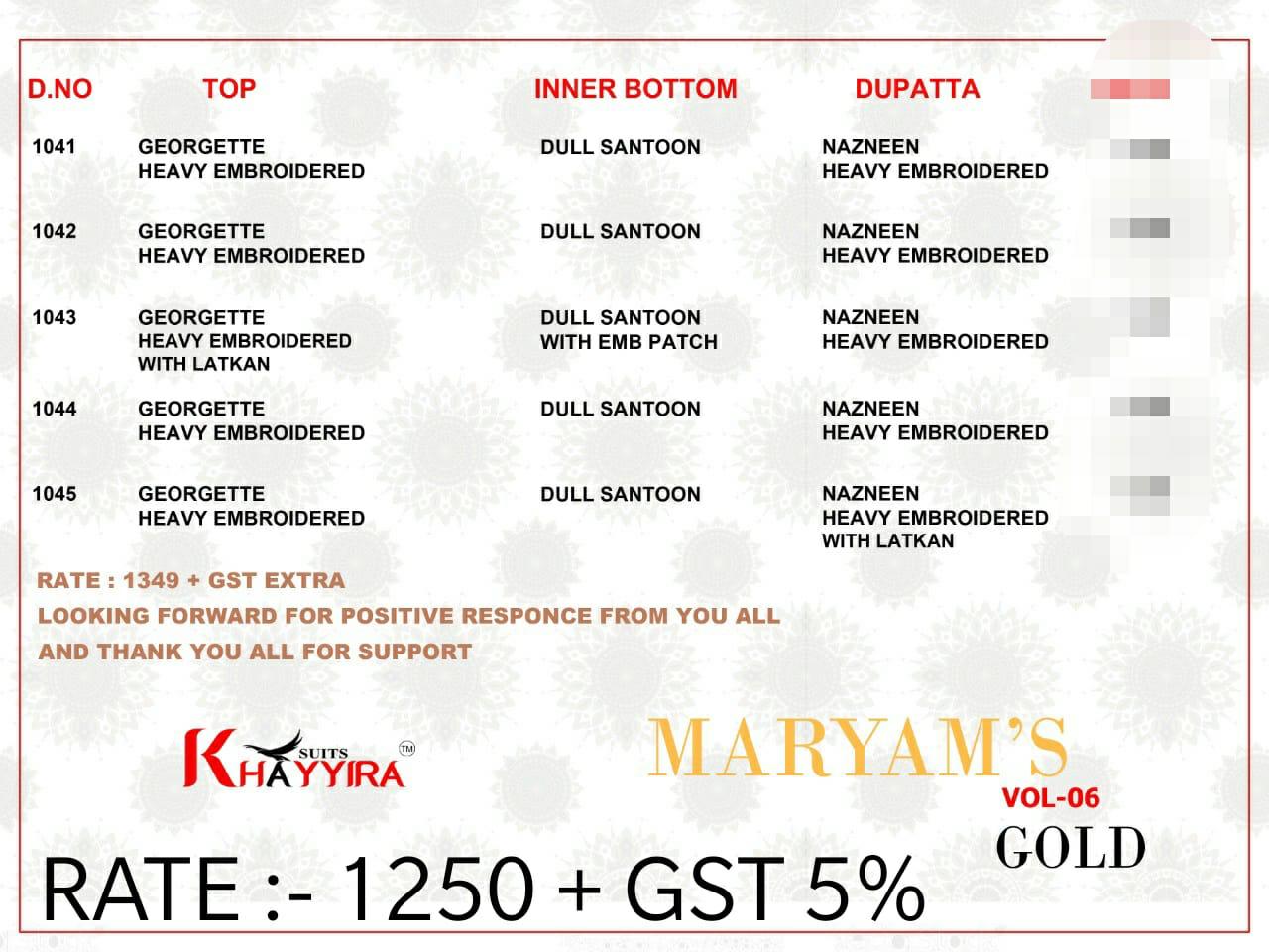 Maryam S Gold Vol 6 By Khayyira Suits Single Available Manufacturer Traders Surat
