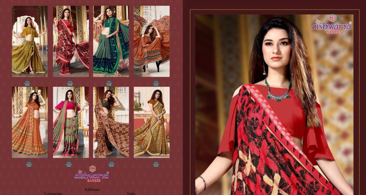 Buy Online Masakali 2 By Aishwarya Saree Wholesale Supplier And Dealer Gujarat 8 Pcs of Full Catalogue at Wholesale Price. Looking for Masakali 2 By Aishwarya Saree Wholesale Supplier And Dealer Gujarat Full Catalouge at Best Price? Buy Now Masakali 2 By Aishwarya Saree Wholesale Supplier And Dealer Gujarat at Wholesale Rate of Rs 4040 with Total 8 Pcs from authroized dealer and supplier of BRAND'S Brand. Cost of Each piece is just only Rs 505 which is very low and affordable price to resale the product in your retail store ,This is Surat based Wholesale Supplier & Dealer of BRAND'S Brand. Click on Brand name to Know more about BRAND'S Brand's products.Call or Whatsapp on 9898838984 for booking or enquiry
