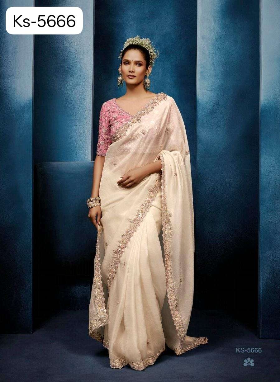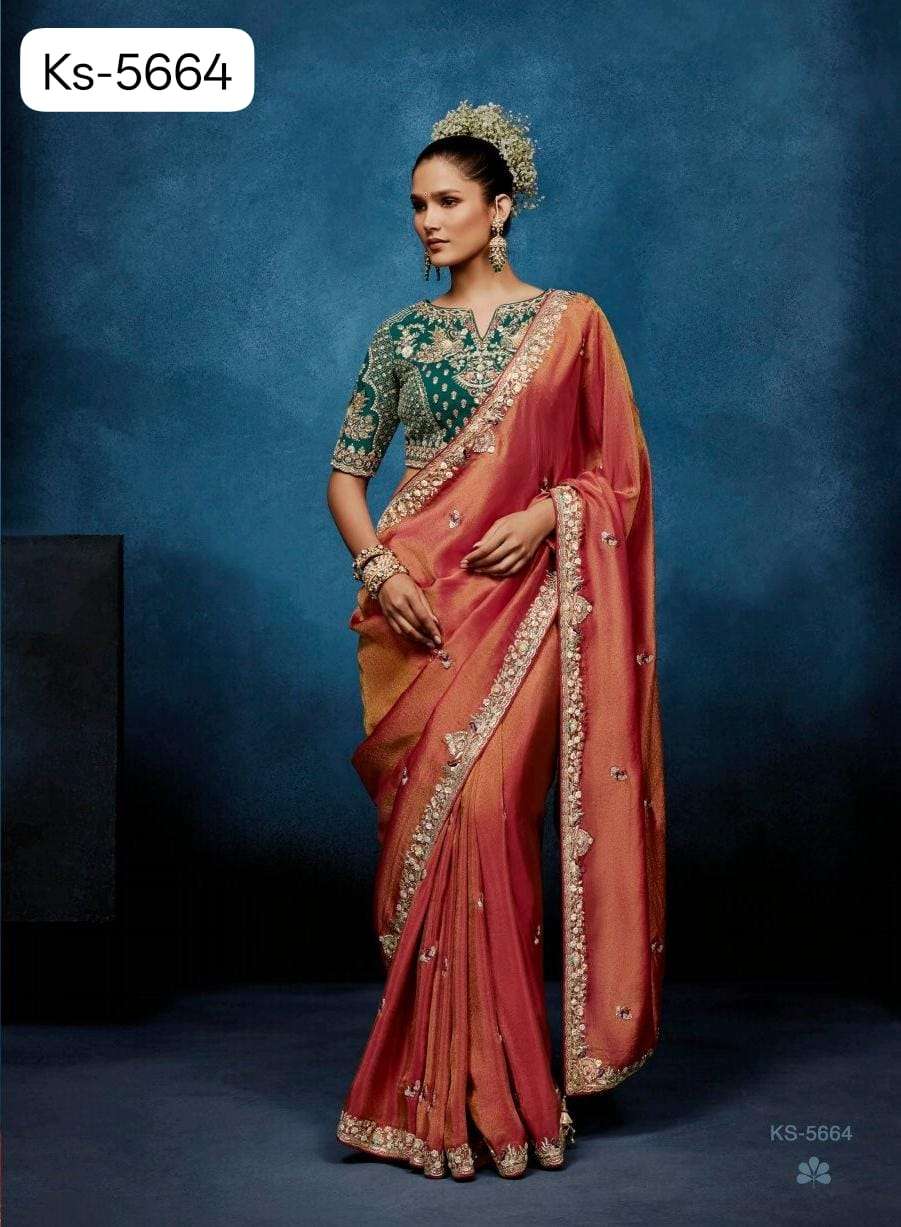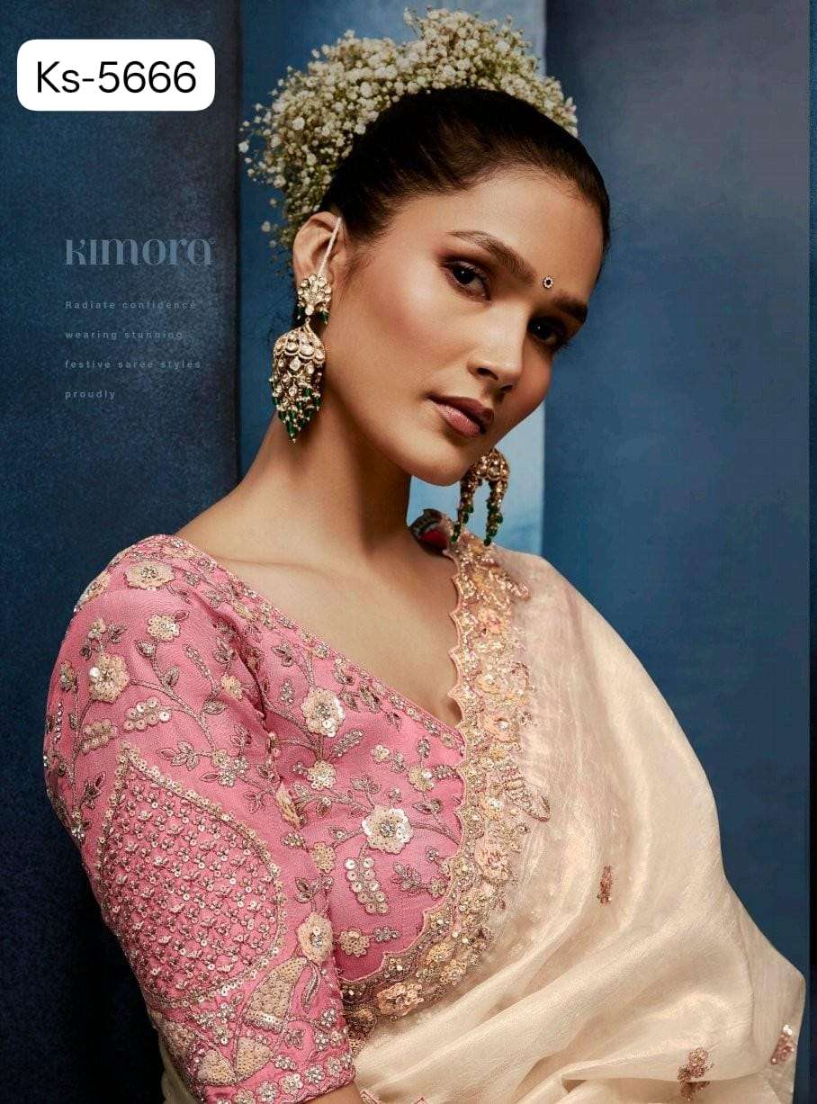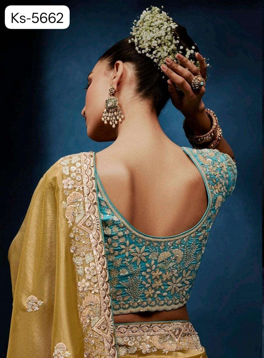 *▶️Fabric - Pure Fancy* *Tissue based Fabric with* *Designer Cobtrast Hand work Blouse 🧐*
