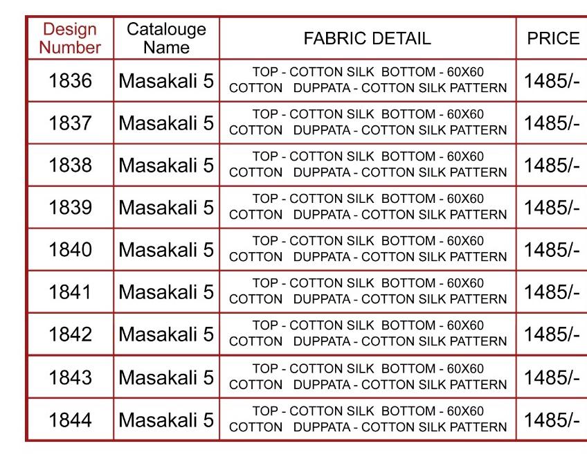 Masakali Vol 5 Series 1836 To 1844 By Bela Single Available Manufacturer Traders Surat