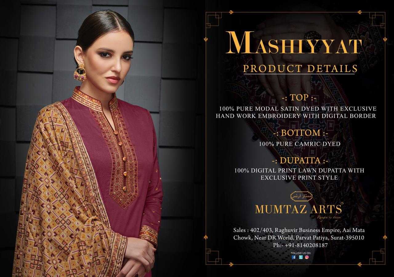 Mashiyyat By Mumtaz Arts 01 Series Fancy Satin Party Wear Salwar Kameez Catlog Wholesale Dealer Surat