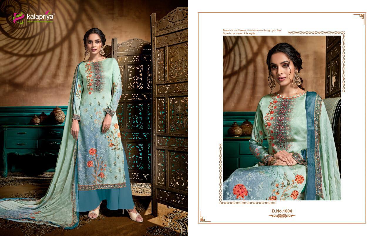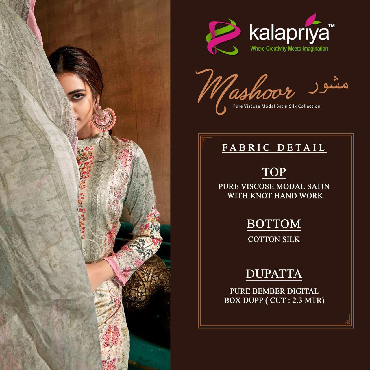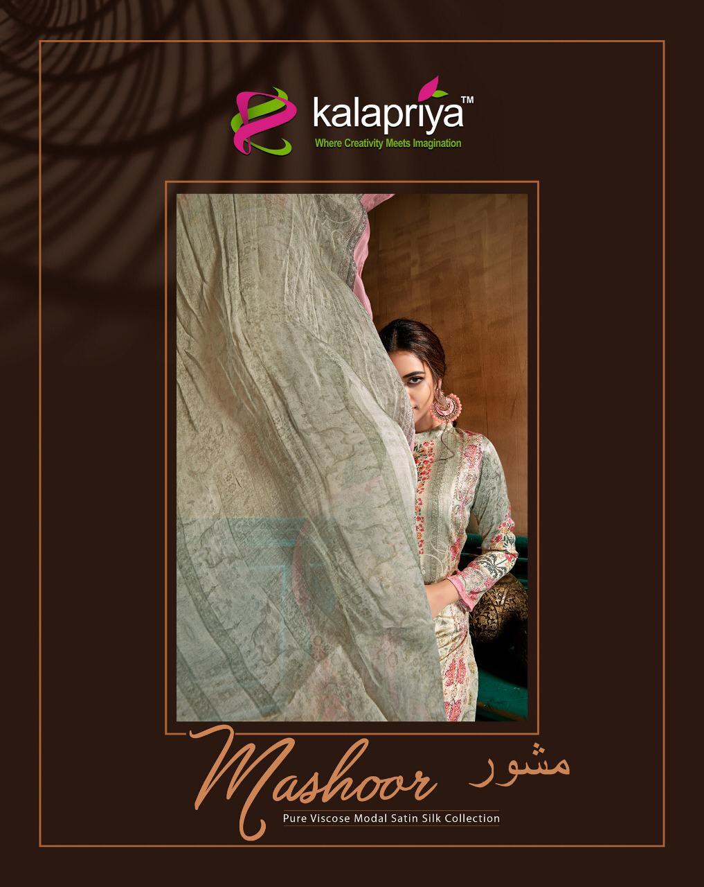 Buy Online Mashoor By Kalapriya Viscose Model Satin Designer Party Wear Suits Wholesale Supplier India 5 Pcs of Full Catalogue at Wholesale Price. Looking for Mashoor By Kalapriya Viscose Model Satin Designer Party Wear Suits Wholesale Supplier India Full Catalouge at Best Price? Buy Now Mashoor By Kalapriya Viscose Model Satin Designer Party Wear Suits Wholesale Supplier India at Wholesale Rate of Rs 7975 with Total 5 Pcs from authroized dealer and supplier of KALAPRIYA Brand. Cost of Each piece is just only Rs 1595 which is very low and affordable price to resale the product in your retail store ,This is Surat based Wholesale Supplier & Dealer of KALAPRIYA Brand. Click on Brand name to Know more about KALAPRIYA Brand's products.Call or Whatsapp on 9898838984 for booking or enquiry