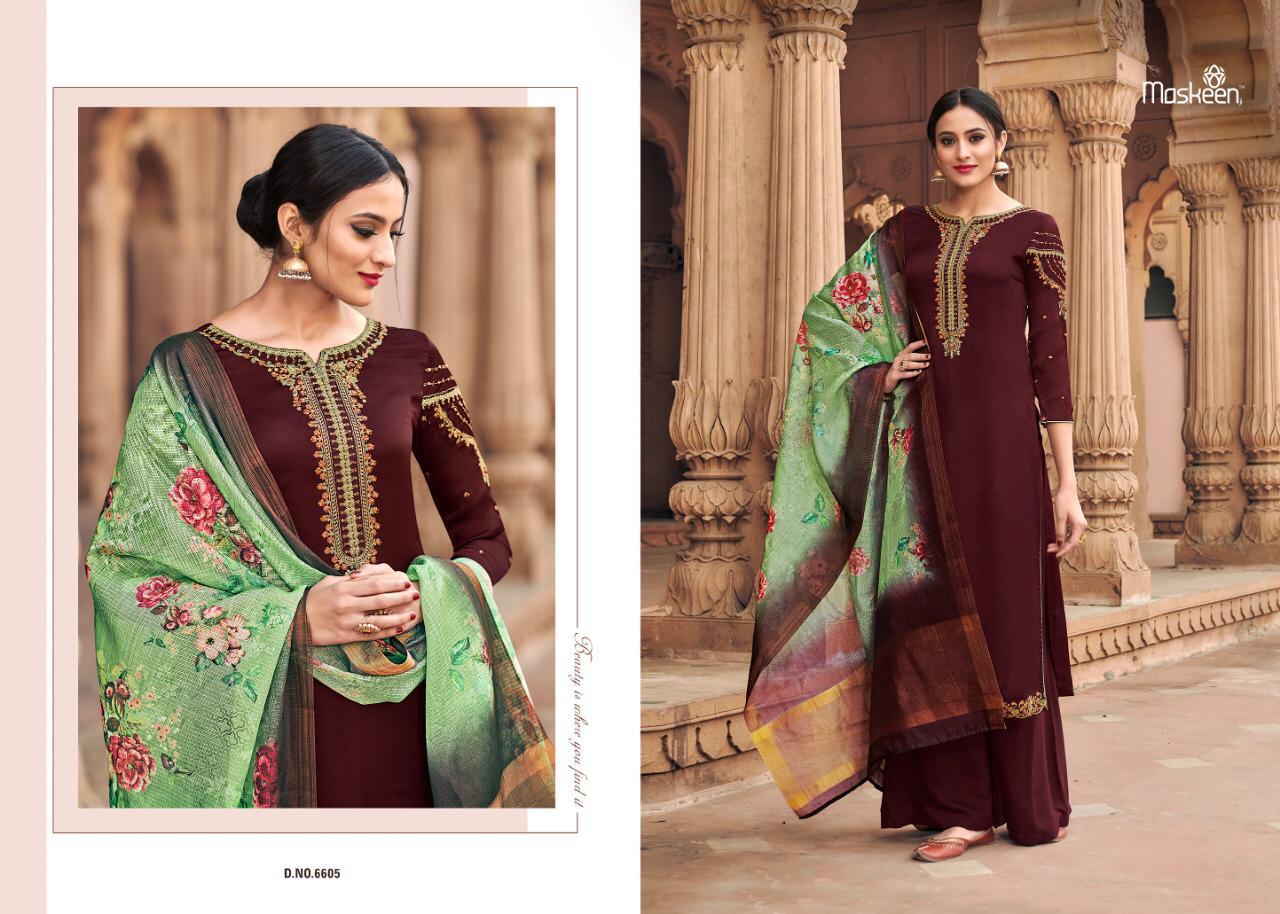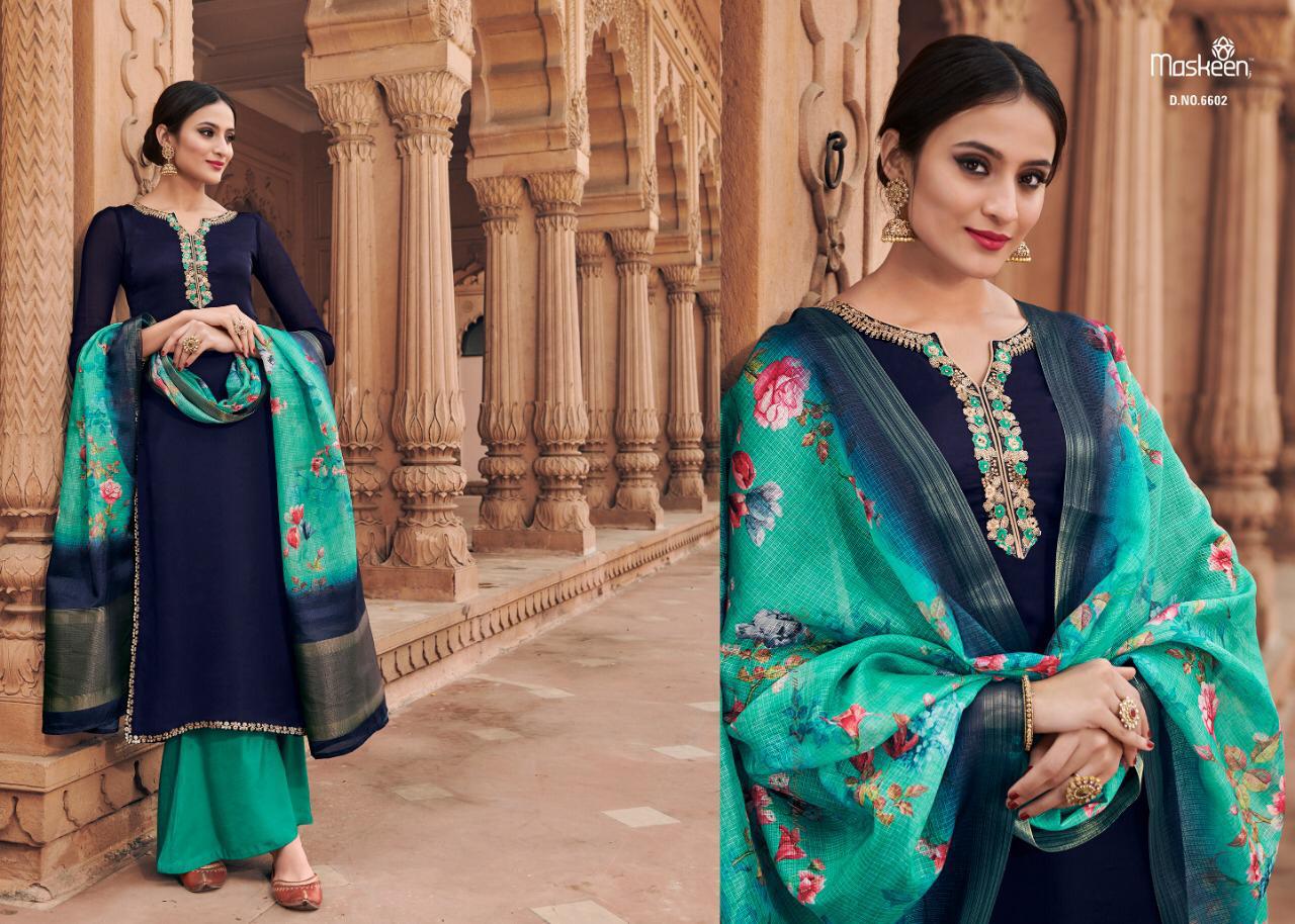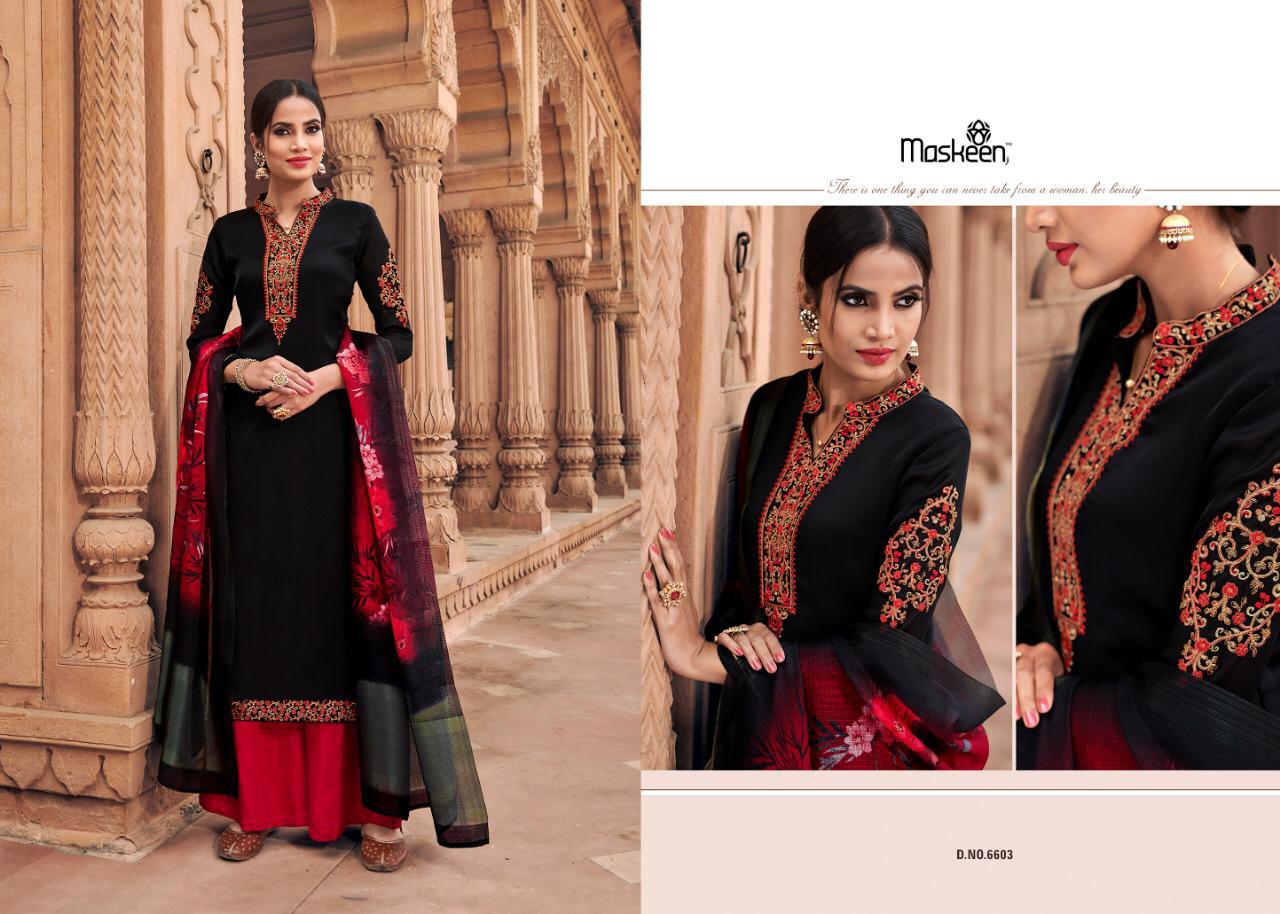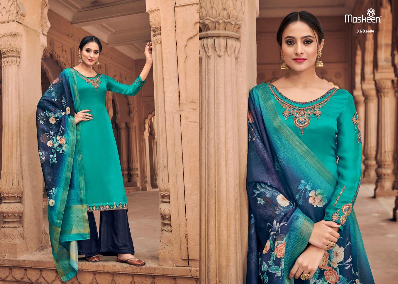 Buy Online Maskeen Ji Silk Vol 3 By Maskeen Maisha 6601 Series Fancy Georgette Satin Salwar Kameez Collection Wholesale Dealer Surat 5 Pcs of Full Catalogue at Wholesale Price. Looking for Maskeen Ji Silk Vol 3 By Maskeen Maisha 6601 Series Fancy Georgette Satin Salwar Kameez Collection Wholesale Dealer Surat Full Catalouge at Best Price? Buy Now Maskeen Ji Silk Vol 3 By Maskeen Maisha 6601 Series Fancy Georgette Satin Salwar Kameez Collection Wholesale Dealer Surat at Wholesale Rate of Rs 7475 with Total 5 Pcs from authroized dealer and supplier of MAISHA Brand. Cost of Each piece is just only Rs 1495 which is very low and affordable price to resale the product in your retail store ,This is Surat based Wholesale Supplier & Dealer of MAISHA Brand. Click on Brand name to Know more about MAISHA Brand's products.Call or Whatsapp on 9898838984 for booking or enquiry