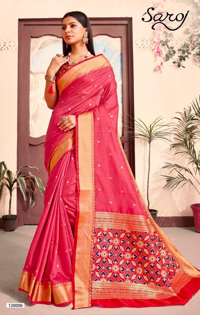 Buy Online Matka Silk By Saroj Silk Designer Occasion Wear Sarees Wholesale Supplier Gujarat 6 Pcs of Full Catalogue at Wholesale Price. Looking for Matka Silk By Saroj Silk Designer Occasion Wear Sarees Wholesale Supplier Gujarat Full Catalouge at Best Price? Buy Now Matka Silk By Saroj Silk Designer Occasion Wear Sarees Wholesale Supplier Gujarat at Wholesale Rate of Rs 8370 with Total 6 Pcs from authroized dealer and supplier of SAROJ SAREE Brand. Cost of Each piece is just only Rs 1395 which is very low and affordable price to resale the product in your retail store ,This is Surat based Wholesale Supplier & Dealer of SAROJ SAREE Brand. Click on Brand name to Know more about SAROJ SAREE Brand's products.Call or Whatsapp on 9898838984 for booking or enquiry