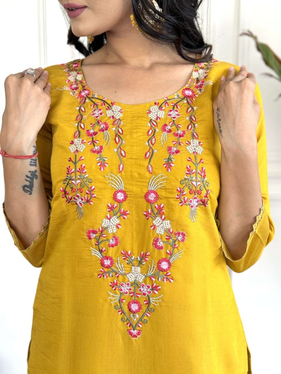 Top- Kurti Fabric-chanderi Pattern-embroidery