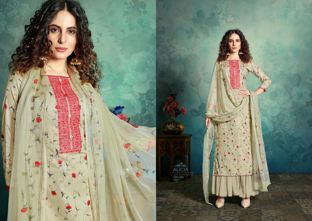 SARGAM PRINTS Presents ***MAYRA*** *?Fabric Details?* *Top:* PURE CAMRIC DESIGNER PRINTS WITH WORK *Bottom :* SOFT COTTON DYED *Dupatta:* PURE BEMBERG PRINT *Designs:* 8 PCS *Rate:* ?895 *HSN CODE:* 5407 |