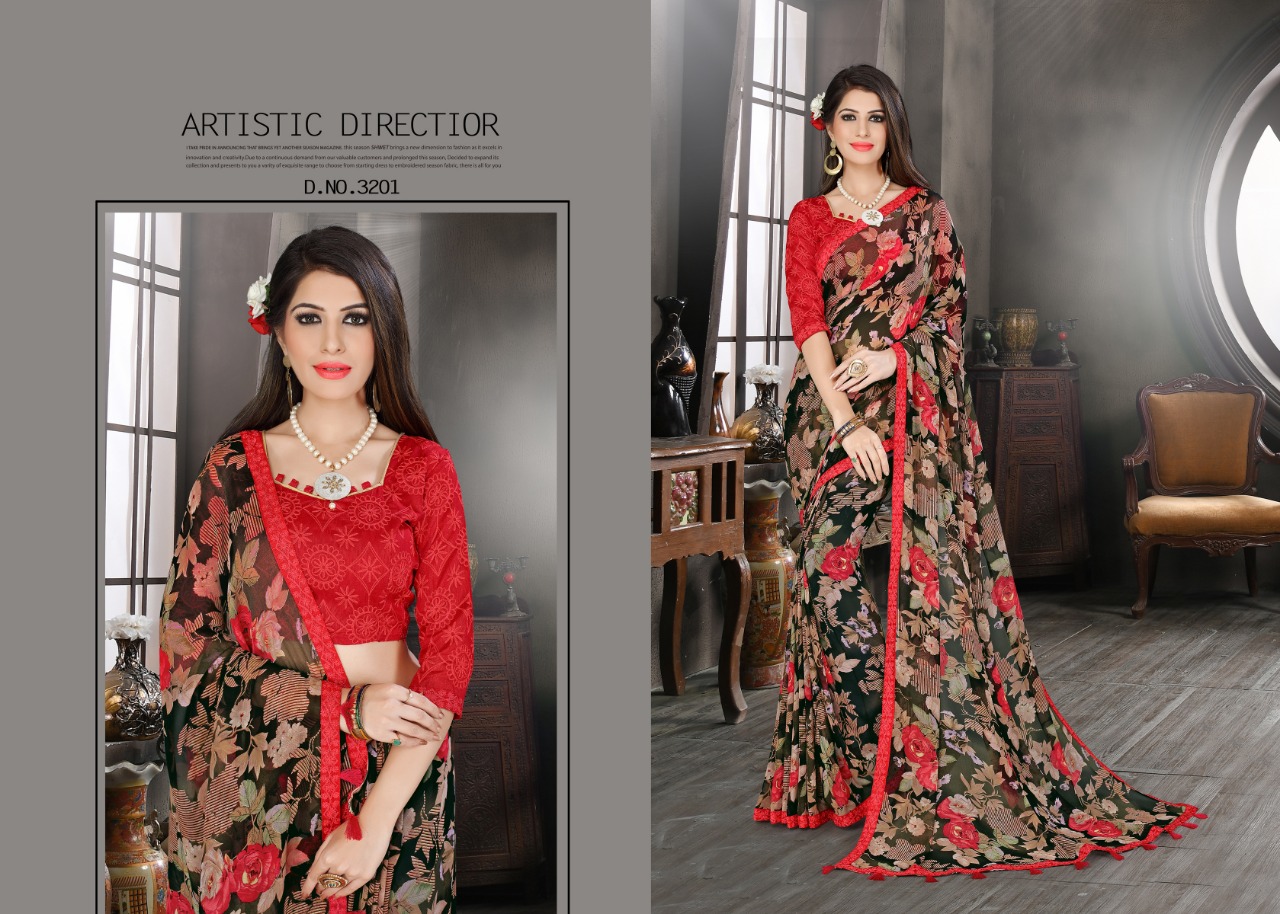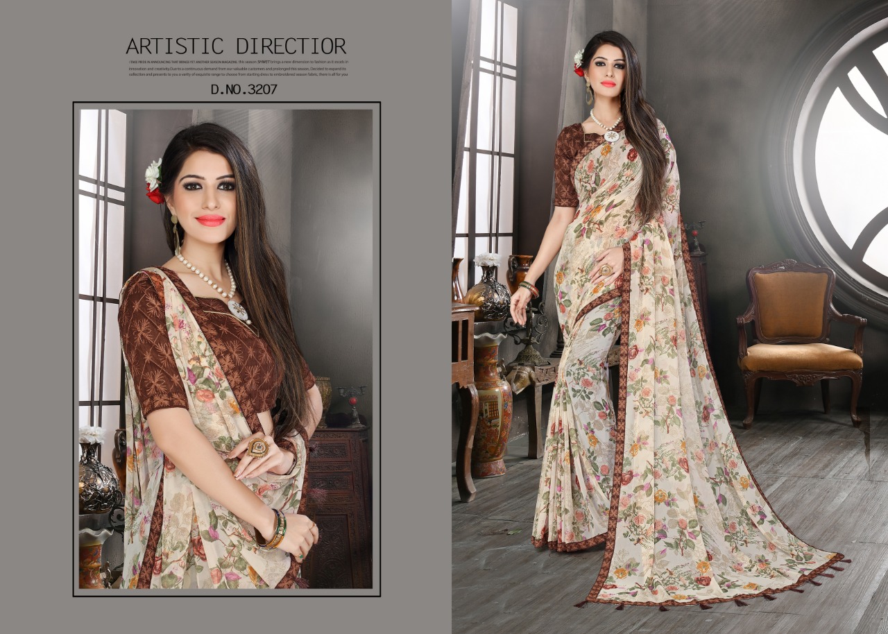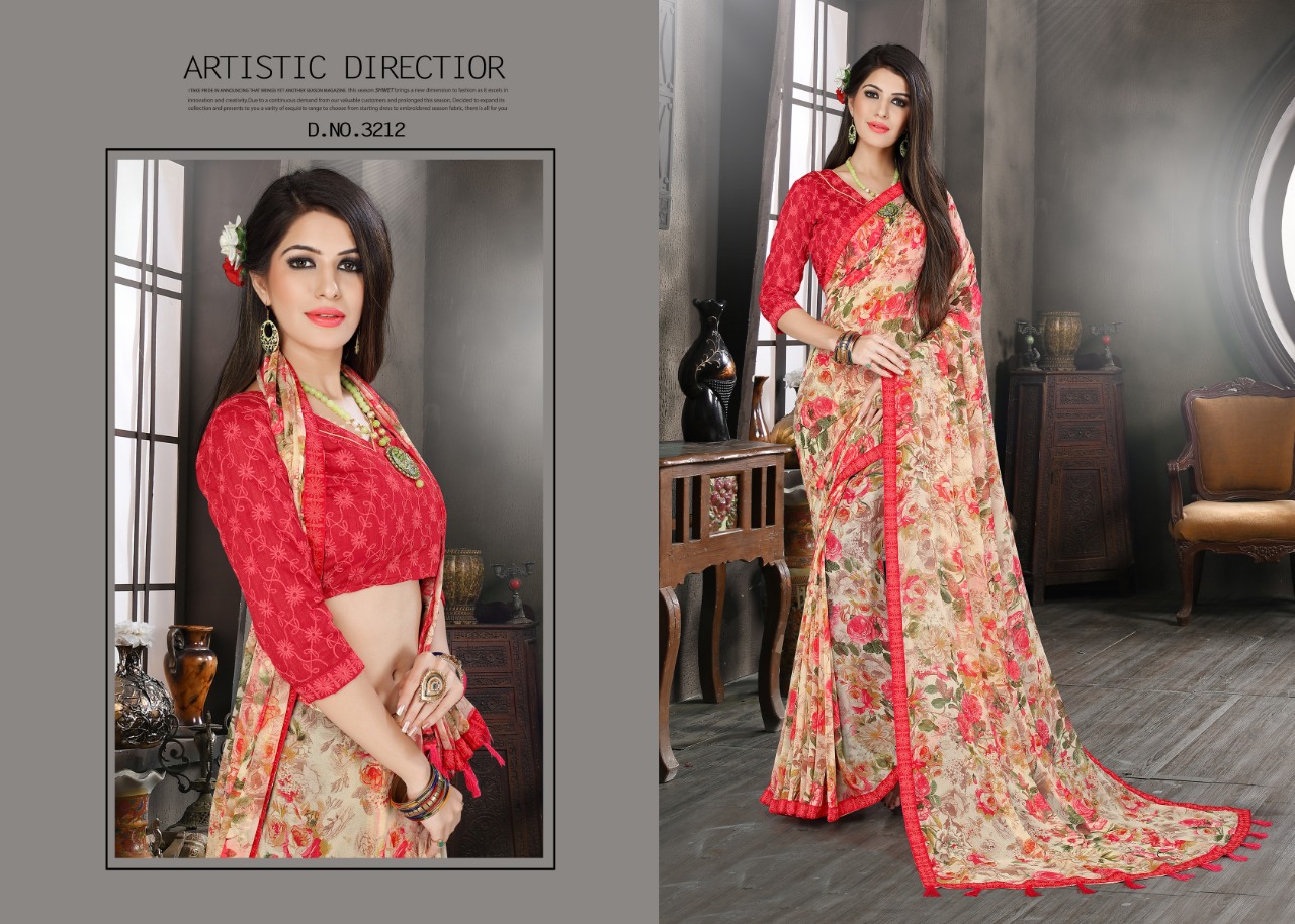 Buy Online Mayra By Shree Mathram 3201 Series Fancy Pure Georgette Printed Saree Catlog Wholesaler Surat 12 Pcs of Full Catalogue at Wholesale Price. Looking for Mayra By Shree Mathram 3201 Series Fancy Pure Georgette Printed Saree Catlog Wholesaler Surat Full Catalouge at Best Price? Buy Now Mayra By Shree Mathram 3201 Series Fancy Pure Georgette Printed Saree Catlog Wholesaler Surat at Wholesale Rate of Rs 7800 with Total 12 Pcs from authroized dealer and supplier of Shree Mathram Brand. Cost of Each piece is just only Rs 650 which is very low and affordable price to resale the product in your retail store ,This is Surat based Wholesale Supplier & Dealer of Shree Mathram Brand. Click on Brand name to Know more about Shree Mathram Brand's products.Call or Whatsapp on 9898838984 for booking or enquiry