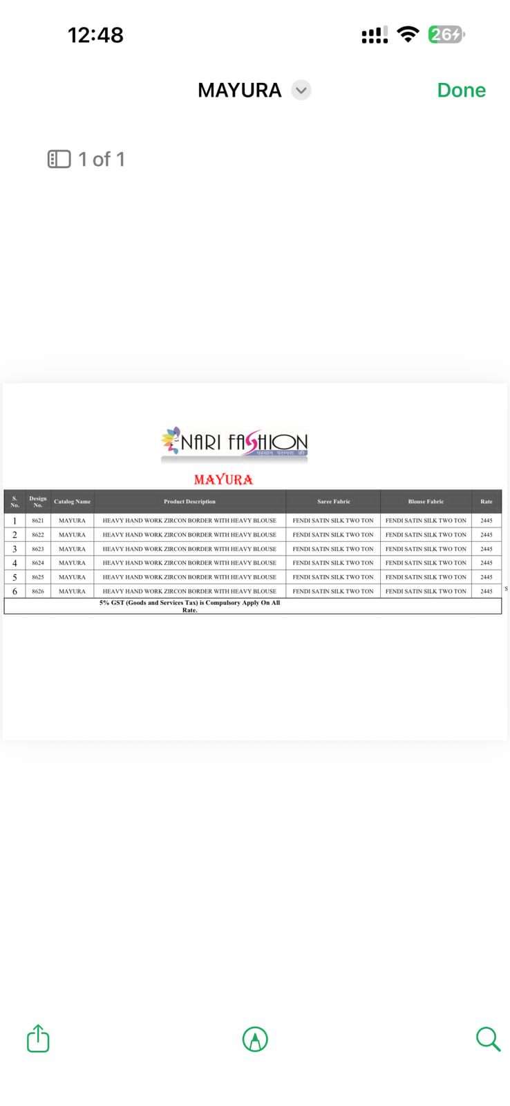 Buy Online MAYURA by nari fashion saree Collection manufacturer surat 6 Pcs of Full Catalogue at Wholesale Price. Looking for MAYURA by nari fashion saree Collection manufacturer surat Full Catalouge at Best Price? Buy Now MAYURA by nari fashion saree Collection manufacturer surat at Wholesale Rate of Rs 14670 with Total 6 Pcs from authroized dealer and supplier of Nari Fashion Brand. Cost of Each piece is just only Rs 2445 which is very low and affordable price to resale the product in your retail store ,This is Surat based Wholesale Supplier & Dealer of Nari Fashion Brand. Click on Brand name to Know more about Nari Fashion Brand's products.Call or Whatsapp on 9898838984 for booking or enquiry