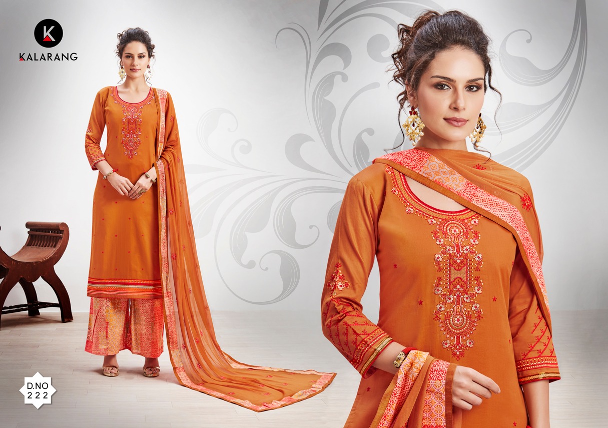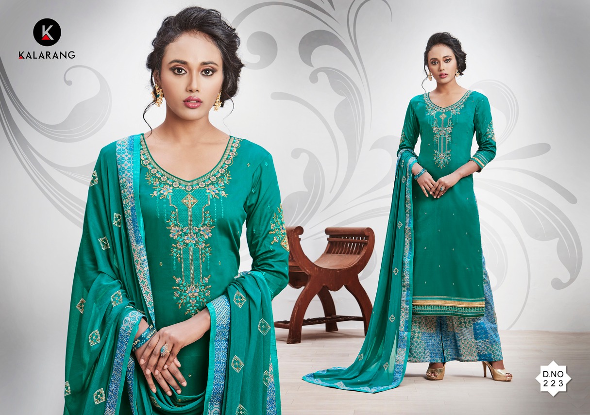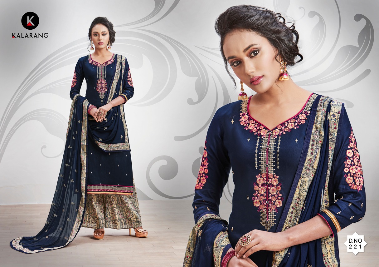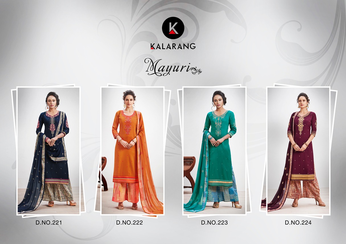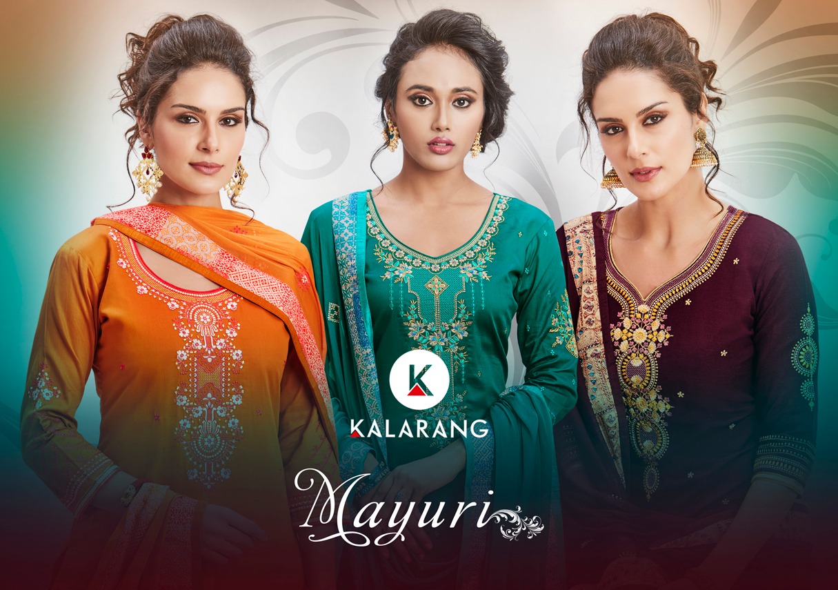 Buy Online Mayuri By Kalarang Jam Silk Desinger Party Wear Suits Wholesale Supplier And Dealer Gujarat 4 Pcs of Full Catalogue at Wholesale Price. Looking for Mayuri By Kalarang Jam Silk Desinger Party Wear Suits Wholesale Supplier And Dealer Gujarat Full Catalouge at Best Price? Buy Now Mayuri By Kalarang Jam Silk Desinger Party Wear Suits Wholesale Supplier And Dealer Gujarat at Wholesale Rate of Rs 3400 with Total 4 Pcs from authroized dealer and supplier of KALARANG Brand. Cost of Each piece is just only Rs 850 which is very low and affordable price to resale the product in your retail store ,This is Surat based Wholesale Supplier & Dealer of KALARANG Brand. Click on Brand name to Know more about KALARANG Brand's products.Call or Whatsapp on 9898838984 for booking or enquiry