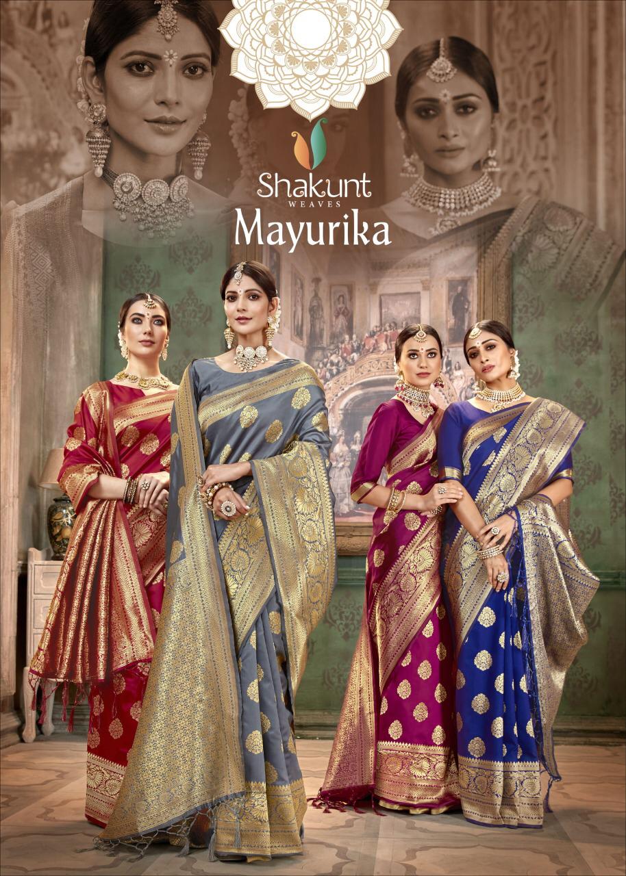 Brand - SHAKUNT. Catlog name - Mayurika . Rate -836 per pcs . Set To Set. GST 5 Percent Extra. Delivery 2 days Weaving silk |