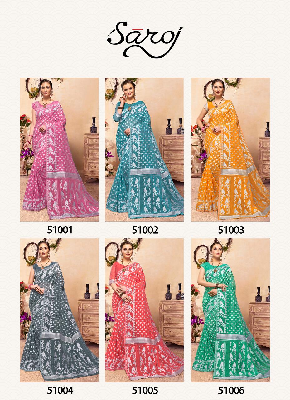 *Meenakkshi by Saroj * Rate -765 per pcs . Fabric: Cotton Jaq butta. Blouse: Cotton Jaq butta. 6 Design in set . Set To Set . GST 5 Percent Extra. Delivery from today |