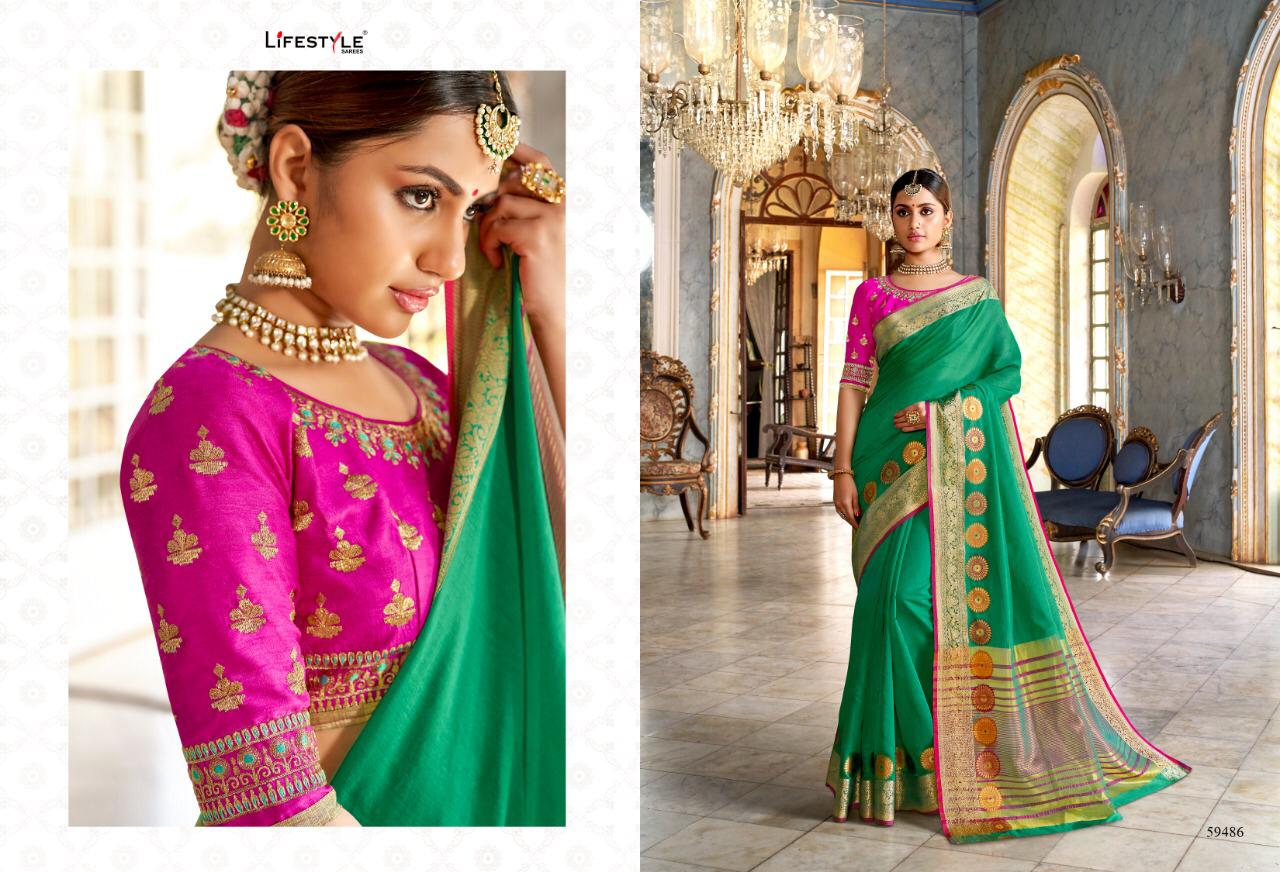 Buy Online Meera 3 By Lifestyle Silk Designer Occasions Wear Sarees Wholesale Supplier Nd Dealer Gujarat 6 Pcs of Full Catalogue at Wholesale Price. Looking for Meera 3 By Lifestyle Silk Designer Occasions Wear Sarees Wholesale Supplier Nd Dealer Gujarat Full Catalouge at Best Price? Buy Now Meera 3 By Lifestyle Silk Designer Occasions Wear Sarees Wholesale Supplier Nd Dealer Gujarat at Wholesale Rate of Rs 4602 with Total 6 Pcs from authroized dealer and supplier of LIFESTYLE Brand. Cost of Each piece is just only Rs 767 which is very low and affordable price to resale the product in your retail store ,This is Surat based Wholesale Supplier & Dealer of LIFESTYLE Brand. Click on Brand name to Know more about LIFESTYLE Brand's products.Call or Whatsapp on 9898838984 for booking or enquiry