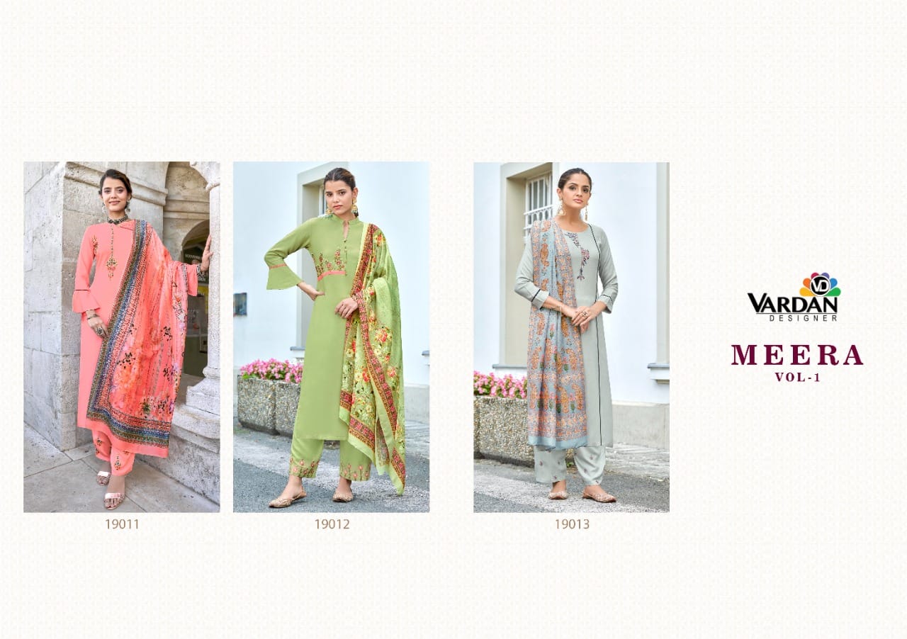 Buy Online Meera By Vardan Designer Top Bottom With Dupatta Single Available Wholesaler Surat Gujarat 3 Pcs of Full Catalogue at Wholesale Price. Looking for Meera By Vardan Designer Top Bottom With Dupatta Single Available Wholesaler Surat Gujarat Full Catalouge at Best Price? Buy Now Meera By Vardan Designer Top Bottom With Dupatta Single Available Wholesaler Surat Gujarat at Wholesale Rate of Rs 2625 with Total 3 Pcs from authroized dealer and supplier of VARDAN DESIGNER Brand. Cost of Each piece is just only Rs 875 which is very low and affordable price to resale the product in your retail store ,This is Surat based Wholesale Supplier & Dealer of VARDAN DESIGNER Brand. Click on Brand name to Know more about VARDAN DESIGNER Brand's products.Call or Whatsapp on 9898838984 for booking or enquiry