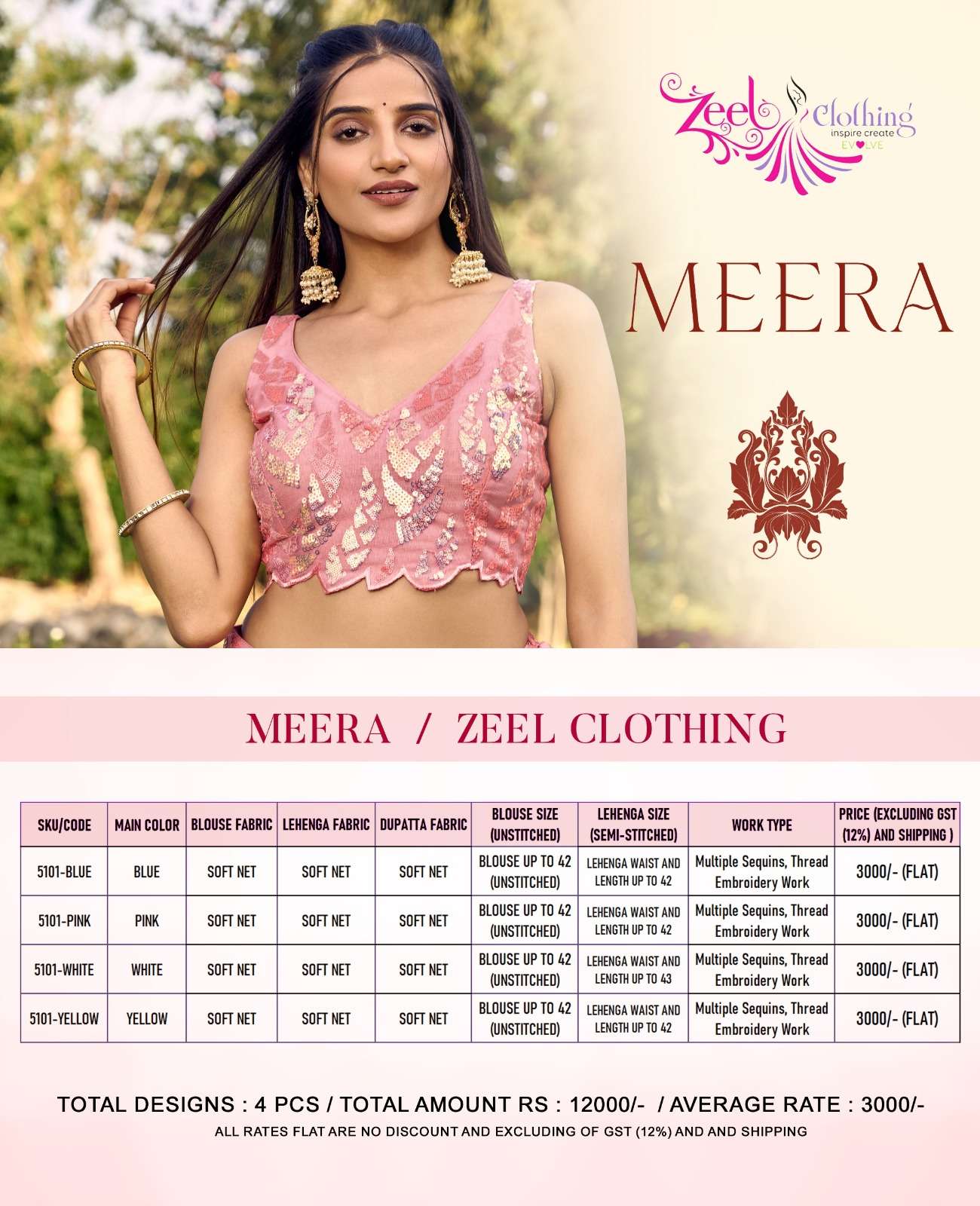 Buy Online MEERA by Zeel Clothing Lehenga collection manufacturer Surat 4 Pcs of Full Catalogue at Wholesale Price. Looking for MEERA by Zeel Clothing Lehenga collection manufacturer Surat Full Catalouge at Best Price? Buy Now MEERA by Zeel Clothing Lehenga collection manufacturer Surat at Wholesale Rate of Rs 12000 with Total 4 Pcs from authroized dealer and supplier of Zeel Clothing Brand. Cost of Each piece is just only Rs 3000 which is very low and affordable price to resale the product in your retail store ,This is Surat based Wholesale Supplier & Dealer of Zeel Clothing Brand. Click on Brand name to Know more about Zeel Clothing Brand's products.Call or Whatsapp on 9898838984 for booking or enquiry