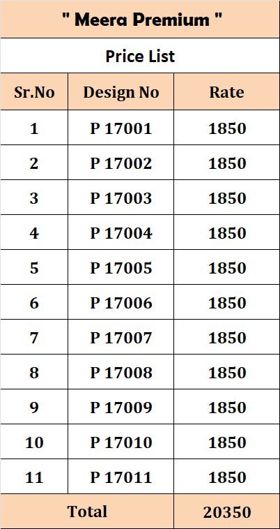 Buy Online Meera Kimora Premium Silk Brasoo Collection 11 Pcs of Full Catalogue at Wholesale Price. Looking for Meera Kimora Premium Silk Brasoo Collection Full Catalouge at Best Price? Buy Now Meera Kimora Premium Silk Brasoo Collection at Wholesale Rate of Rs 20350 with Total 11 Pcs from authroized dealer and supplier of KIMORA Brand. Cost of Each piece is just only Rs 1850 which is very low and affordable price to resale the product in your retail store ,This is Surat based Wholesale Supplier & Dealer of KIMORA Brand. Click on Brand name to Know more about KIMORA Brand's products.Call or Whatsapp on 9898838984 for booking or enquiry