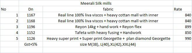 Brand - Meera Li . Set & Loose & Singel. Single Extra 100 on company price list GST Extra . Delivery- Running |