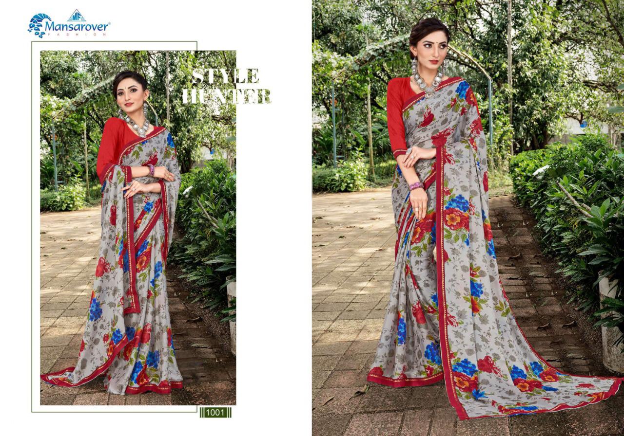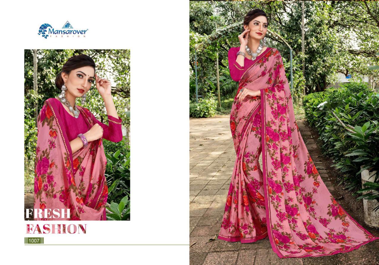 _NEW INTRODUCING_ _*MEERA-MOHAN*_ _Brand:- *MANSAROVER FASHION*_ _Rate:- *375/-*_ _Fabric:- *CHINESE CHIFFON PRINT* *WITH EXCLUSIVE DYABLE BODER* _Total Designs:- *08*_ _*WITH BLOUSE*_ Set to set . Delivery from today |