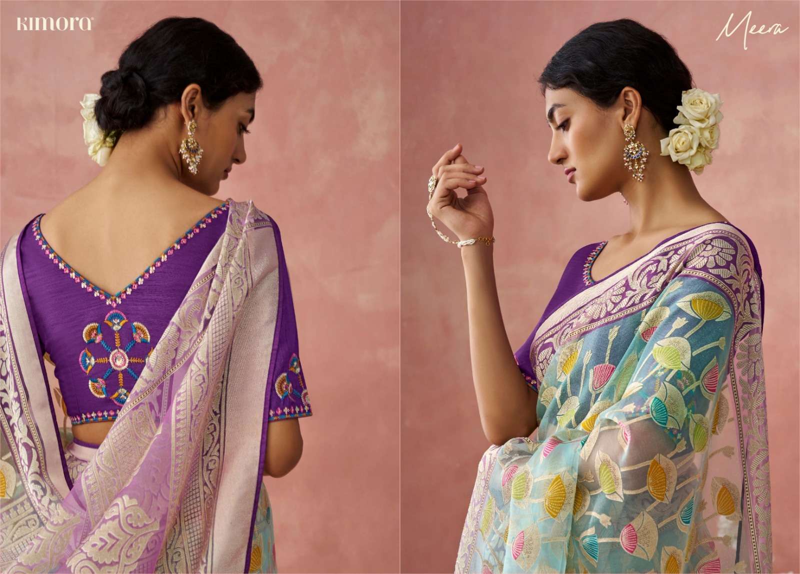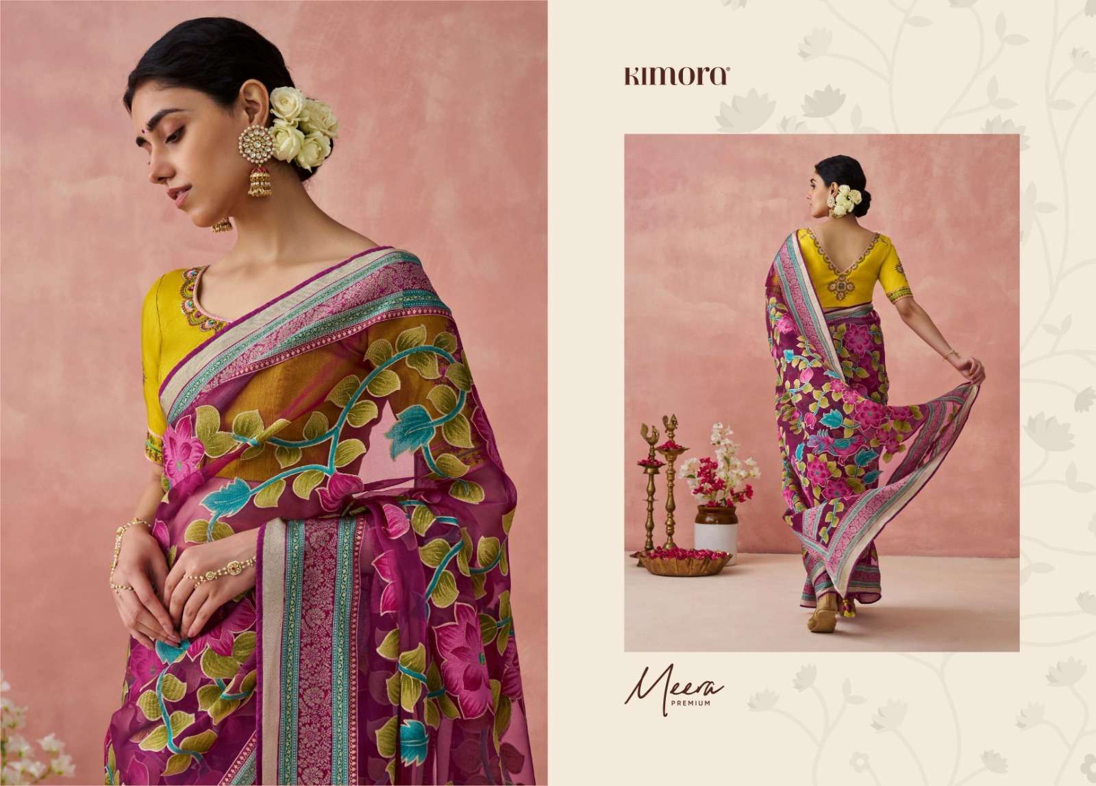 MEERA PREMIUM VOL 15 SERIES 17041 TO 17051 by KIMORA Organza Beautiful Printed Saree collection manufacturer surat