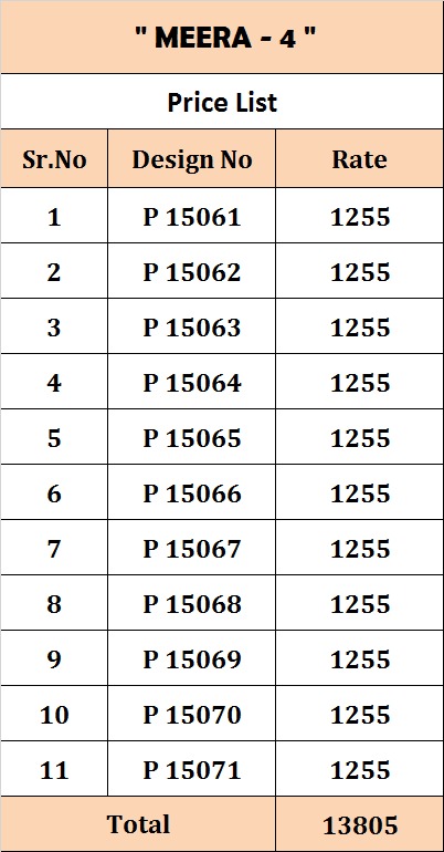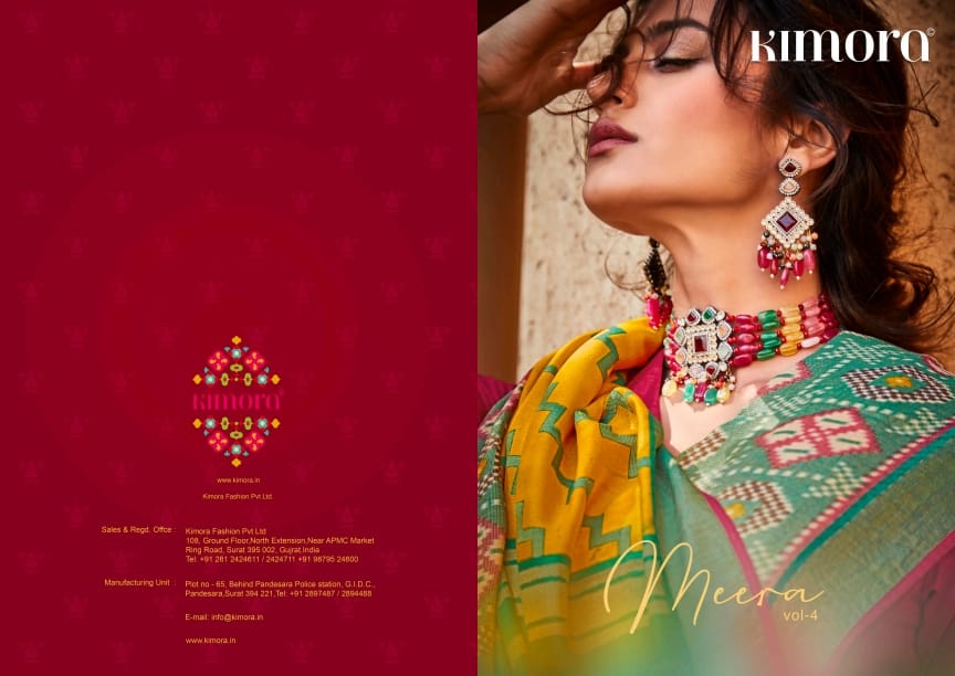 Buy Online Meera Vol 2 By Kimora Fashion Dealer From India 11 Pcs of Full Catalogue at Wholesale Price. Looking for Meera Vol 2 By Kimora Fashion Dealer From India Full Catalouge at Best Price? Buy Now Meera Vol 2 By Kimora Fashion Dealer From India at Wholesale Rate of Rs 13805 with Total 11 Pcs from authroized dealer and supplier of KIMORA Brand. Cost of Each piece is just only Rs 1255 which is very low and affordable price to resale the product in your retail store ,This is Surat based Wholesale Supplier & Dealer of KIMORA Brand. Click on Brand name to Know more about KIMORA Brand's products.Call or Whatsapp on 9898838984 for booking or enquiry