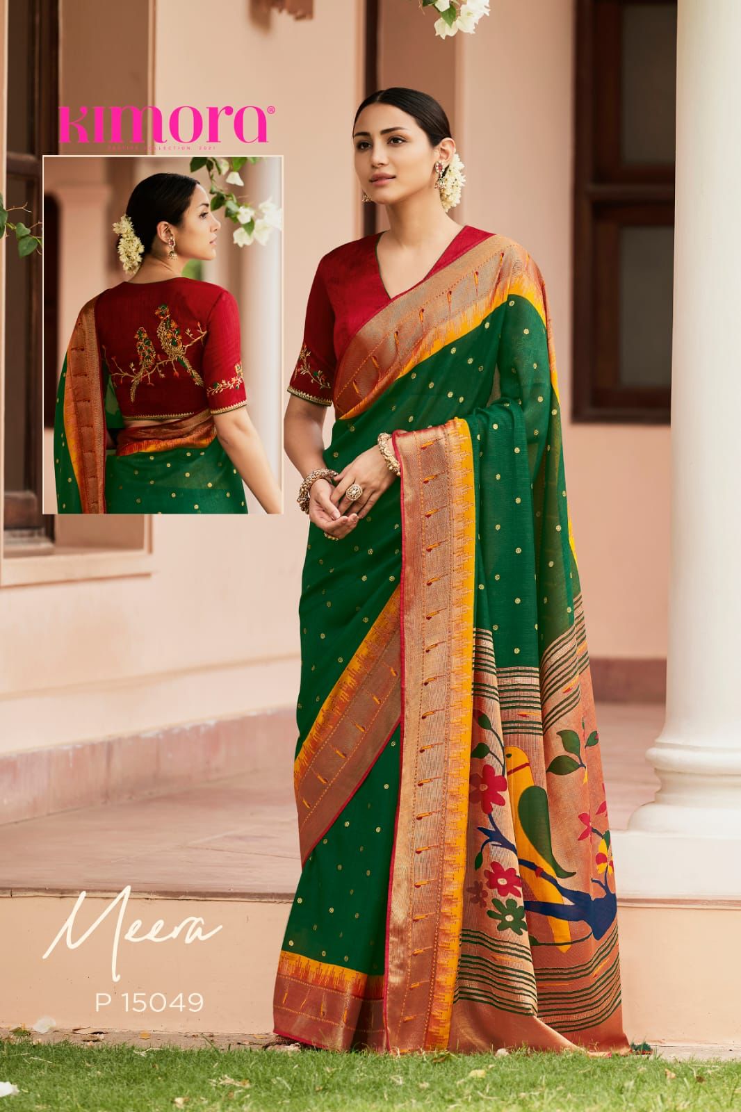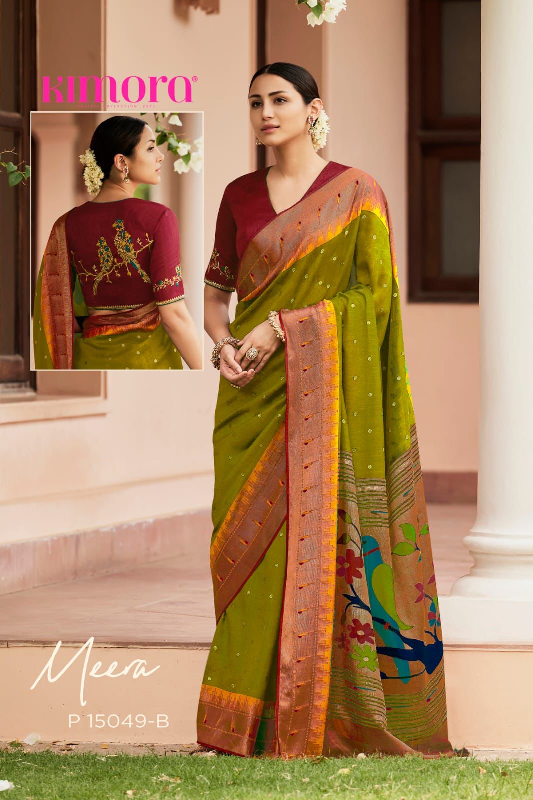 *Launching an Exclusive Designer Concept?* Brand - *Kimora* 15049 colours ??Catalogue - *Meera Vol 3* ??Rate - *1235+5%* ??Fabric:- ~*Soft Brasso Silk* ~*Beautifully Printed Paithani* ~*Designer Blouse* ~*Customised Finish with Piped Border* Set @ loose @ Singel 100+single |