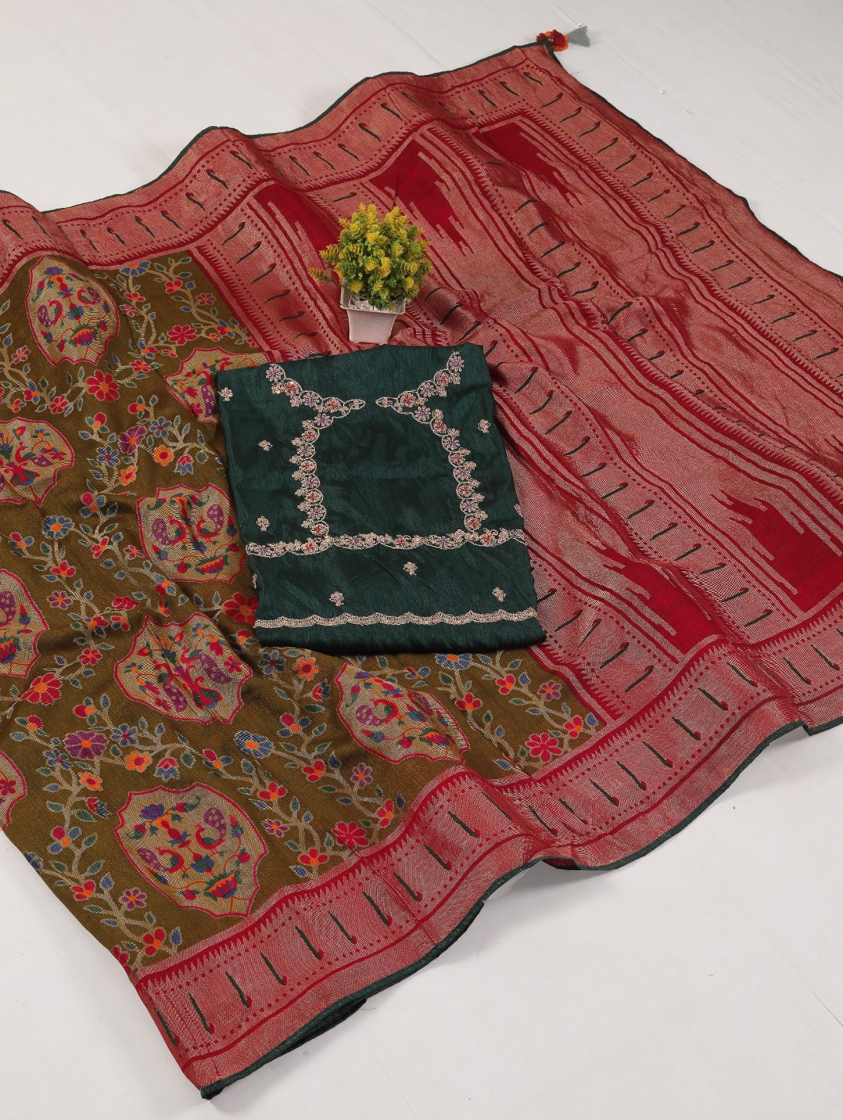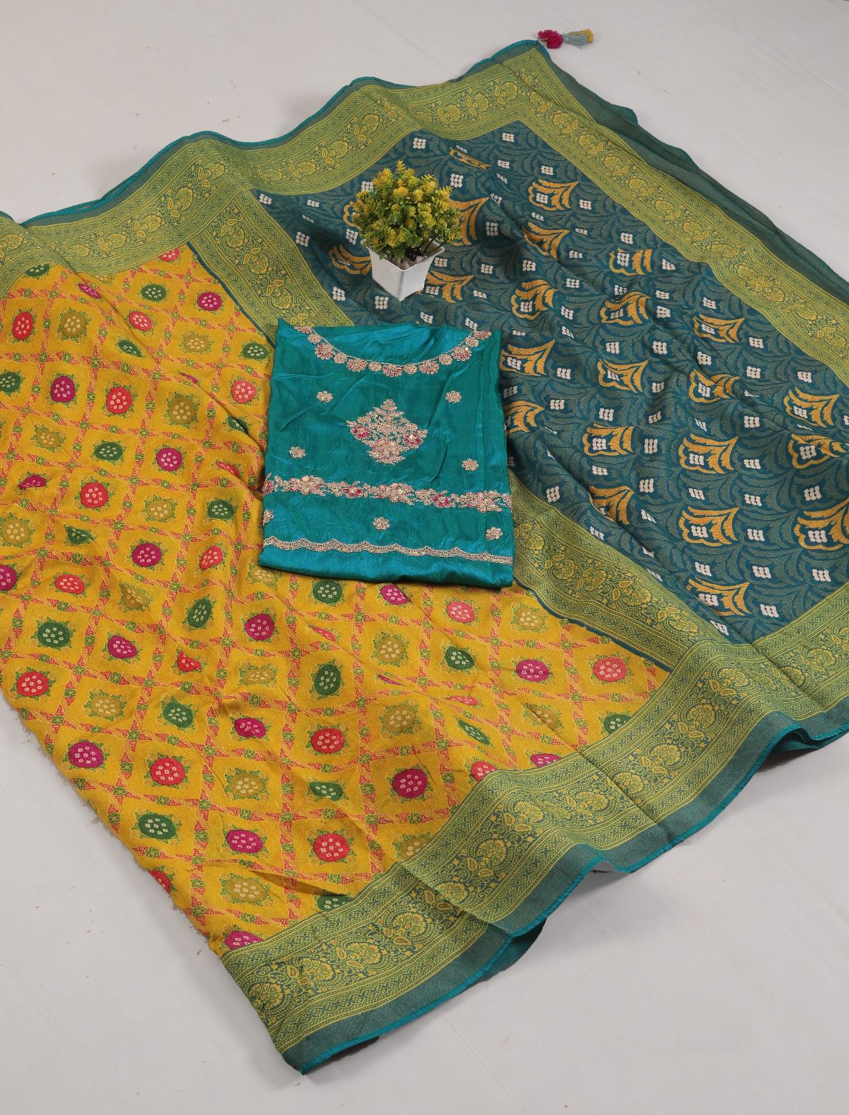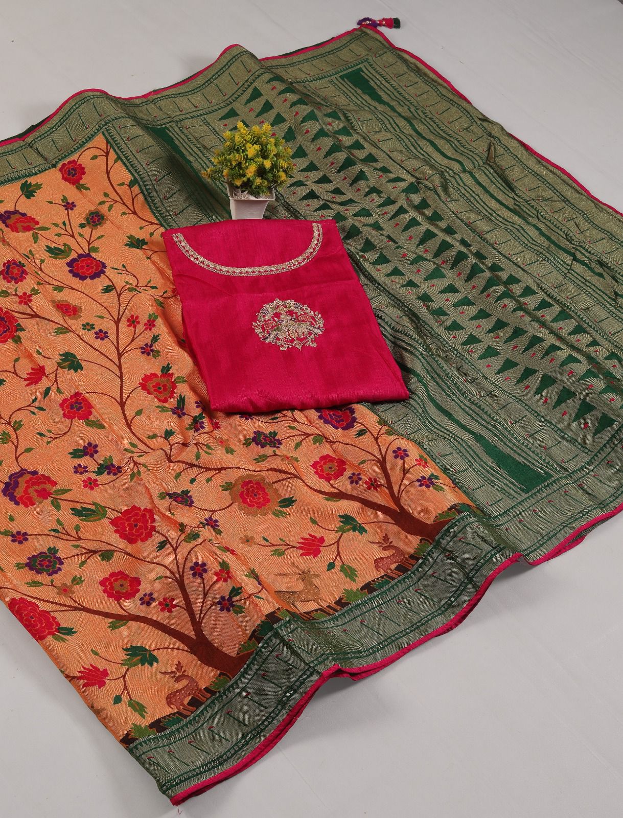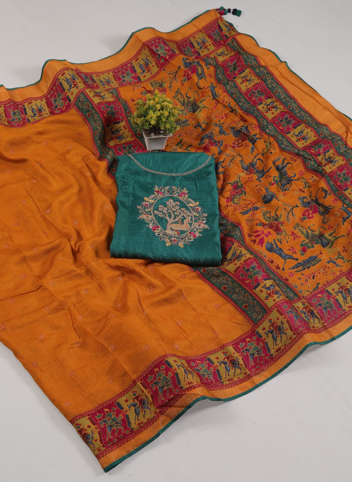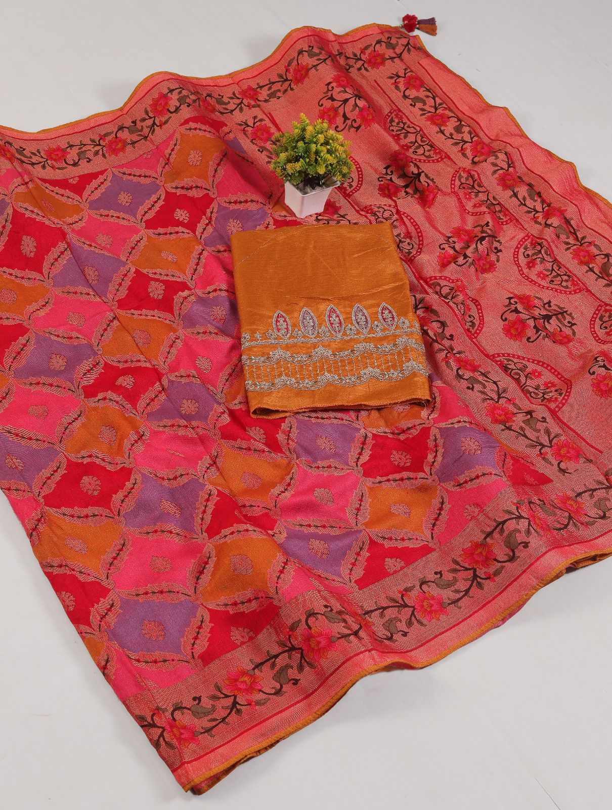 *This Festive Season Get The Elegant And Traditional Look In This Meera Brasso Silk Saree The Soft And Lightweight Fabric Drapes Beautifully, Making It Comfortable To Wear For Extended Periods Of Time.* *Brand : Kimora* *Catalog Name : Meera Vol -14* *Series: 17021 To 17031* *Saree Fabric : Soft Brasso With Beautiful And Intricate Patterns Embossed On Saree Having Customised Finish With Piped Border Or Tussles* *Blouse Fabric : Dhupian Silk With Embroidery On The Sleeves And Back Neck* *Rate : 1255/-+5% Gst* *Occasion : Ceremonial, Casual, Formal Wear* SINGLE AVAILABLE 100+single |