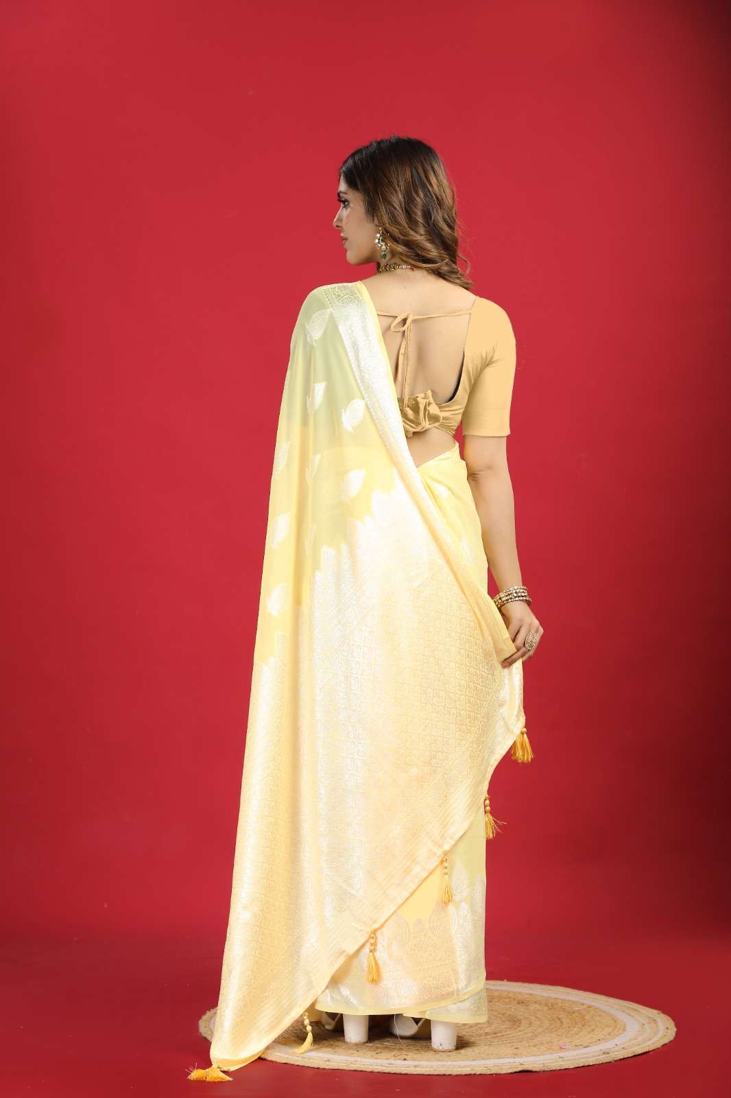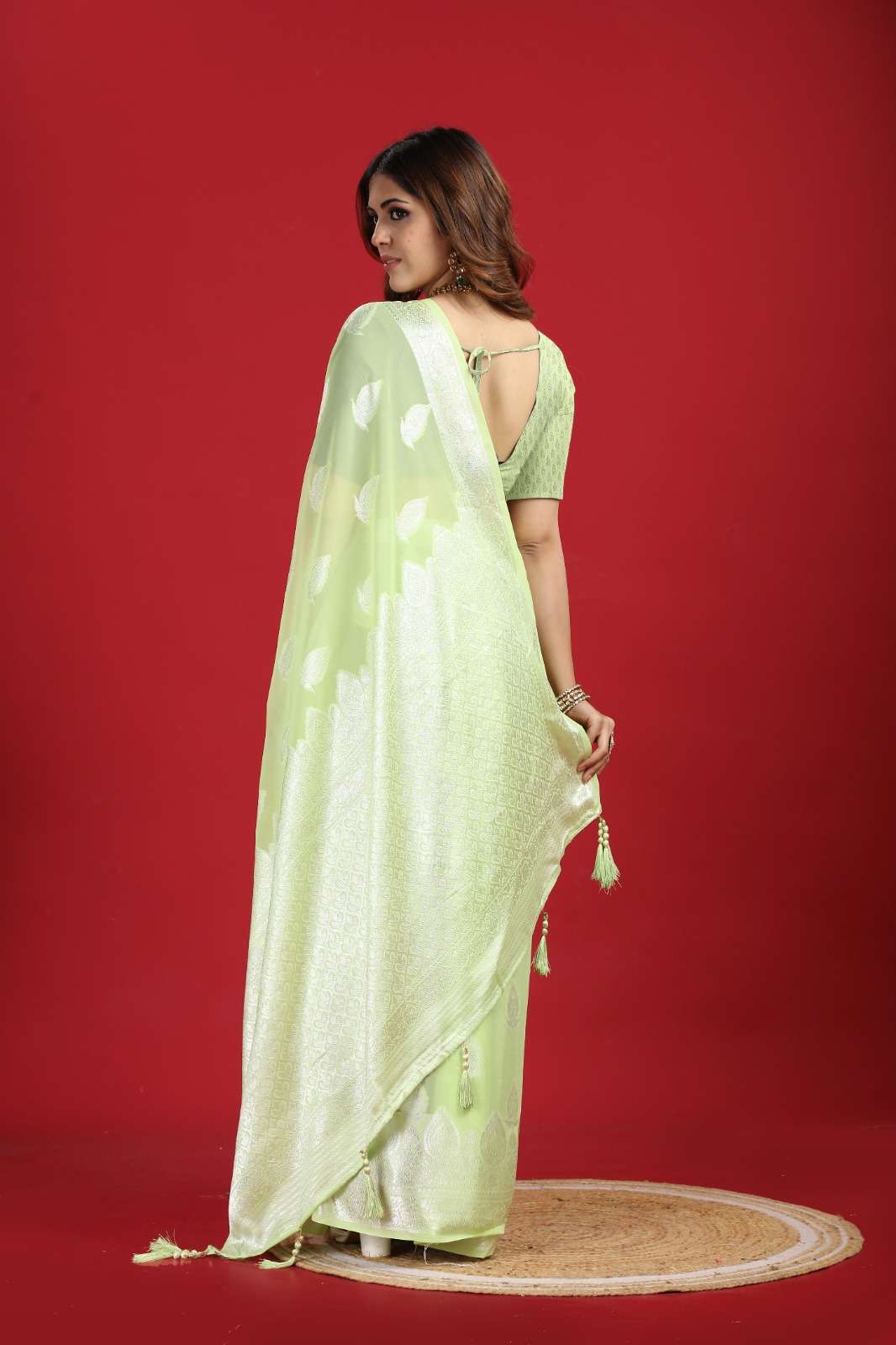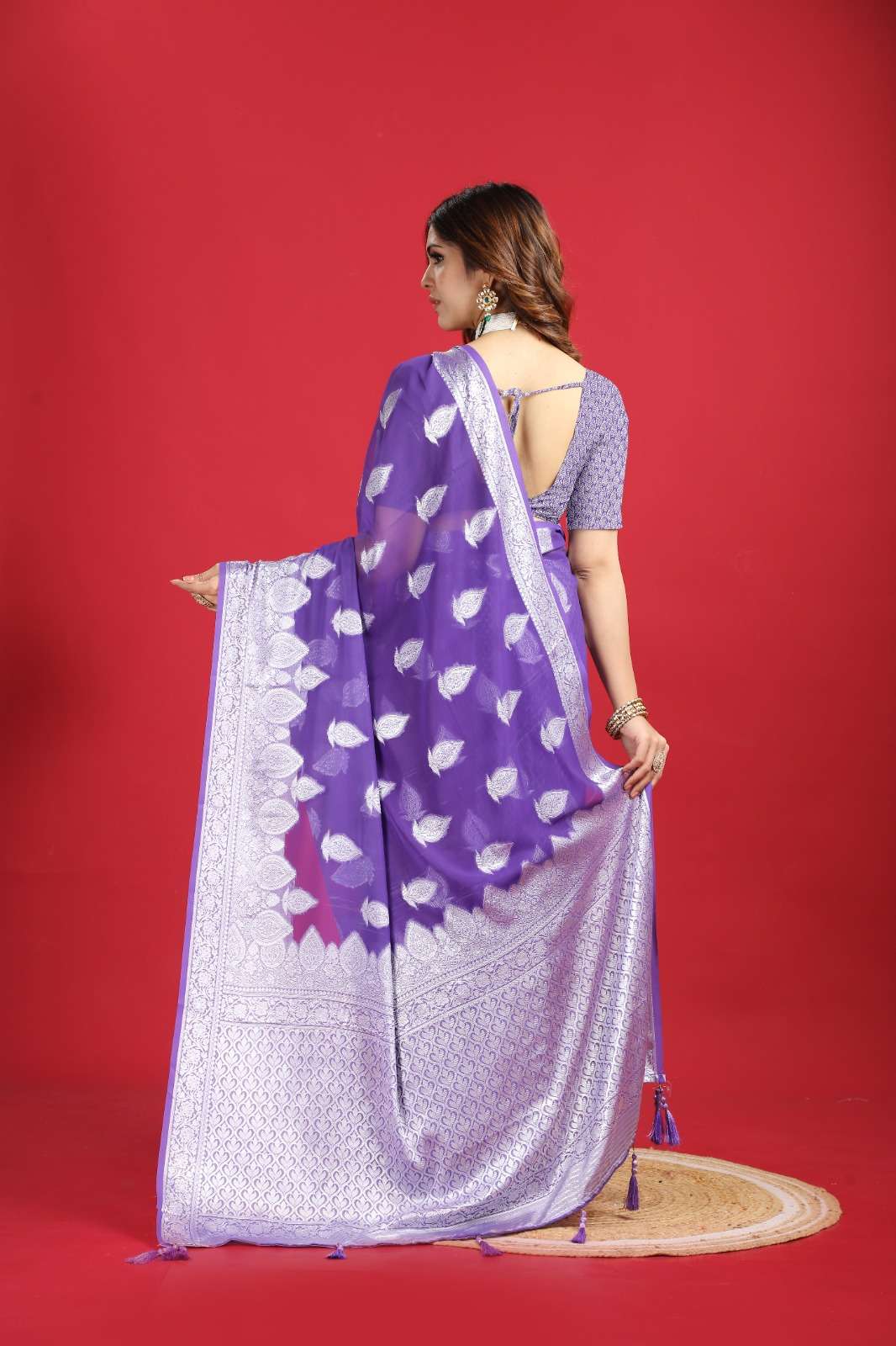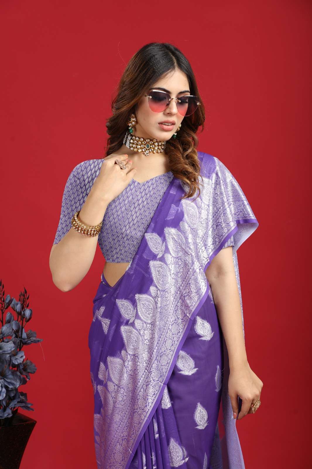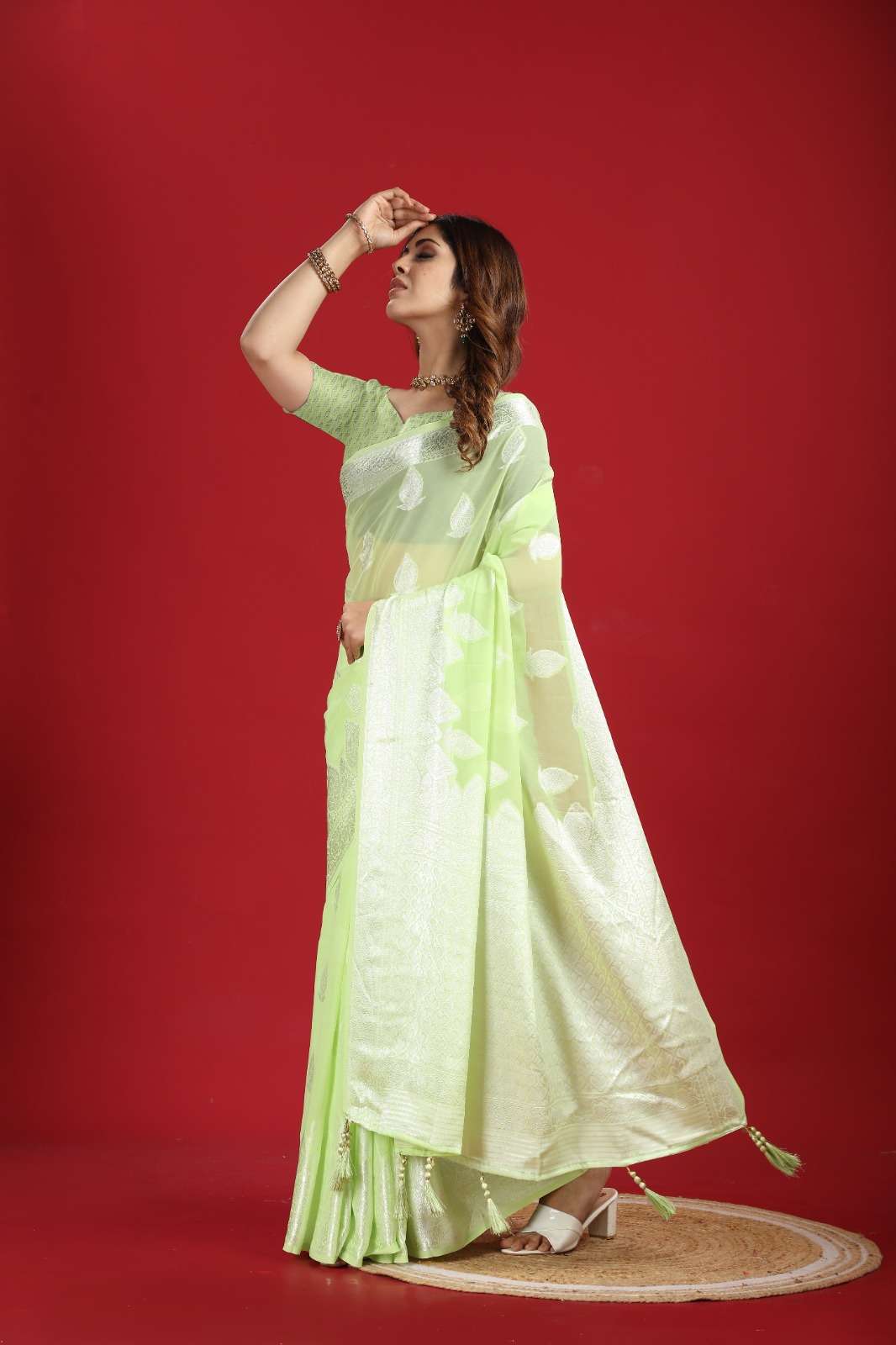 Catalog Name : *Meghna* No of Pcs : 5 Fabric : Georgette Work : Weaving print with weaving zari border with running blouse