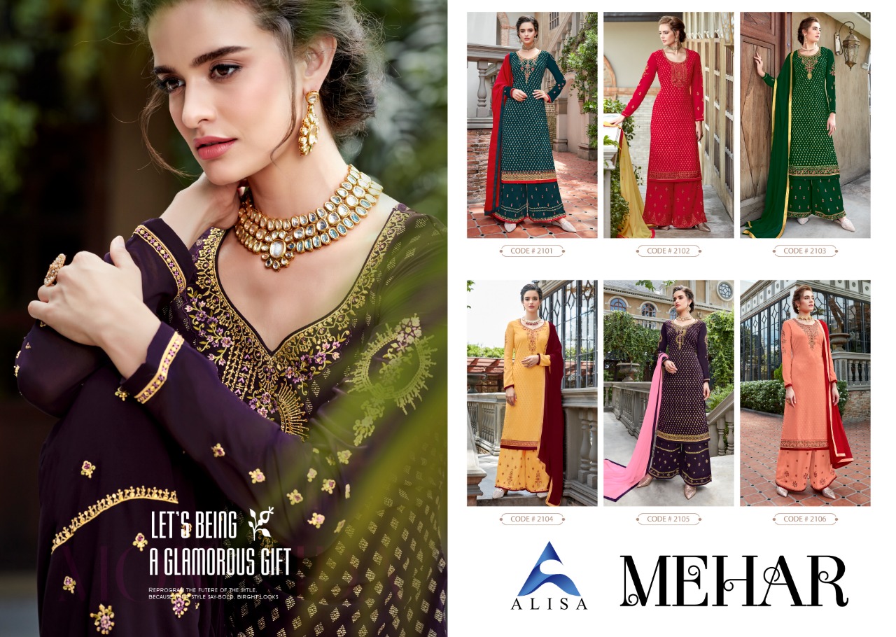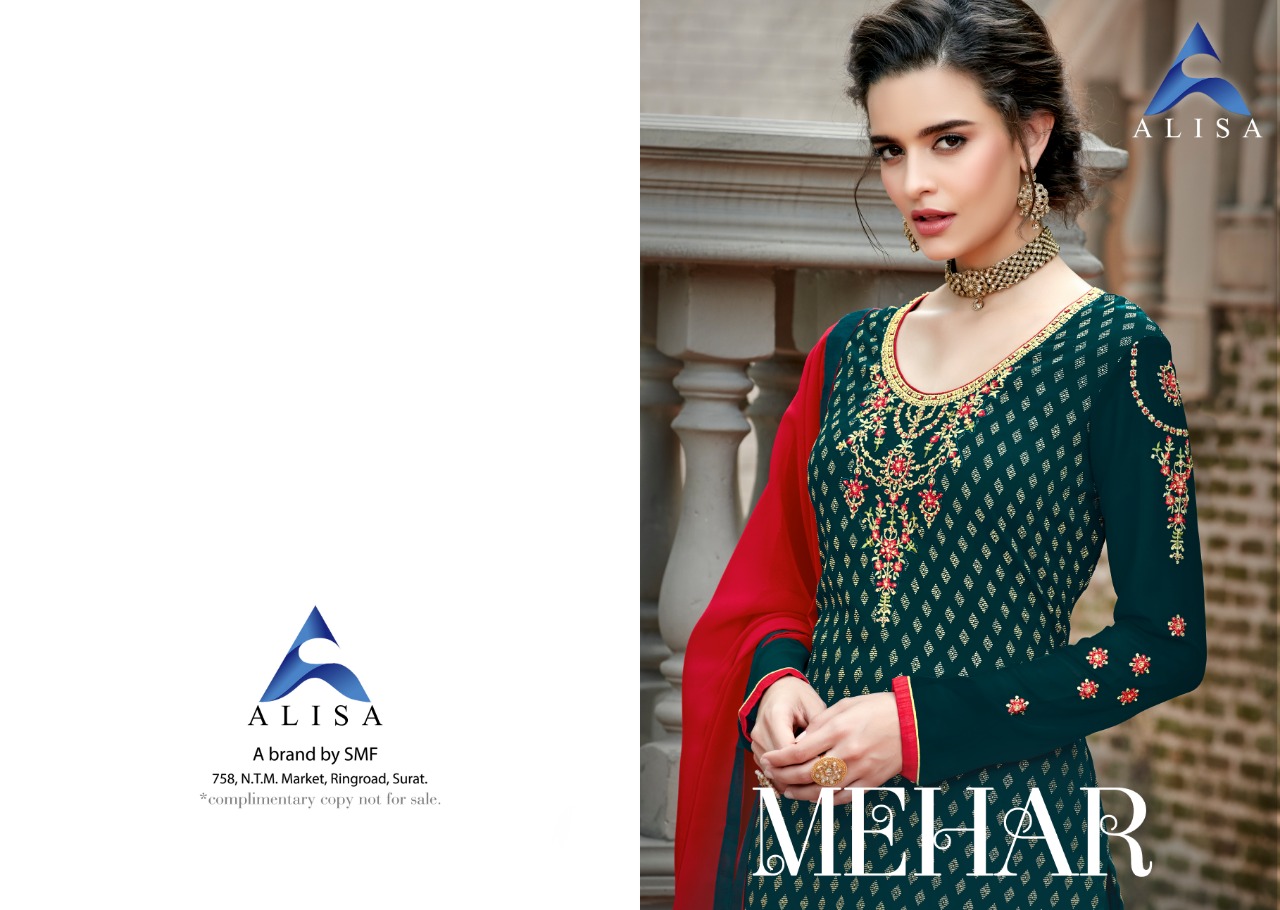 Buy Online Mehar By Alisa Georgette Embroidered Designer Party Wear Suits Wholesale Supplier Surat 6 Pcs of Full Catalogue at Wholesale Price. Looking for Mehar By Alisa Georgette Embroidered Designer Party Wear Suits Wholesale Supplier Surat Full Catalouge at Best Price? Buy Now Mehar By Alisa Georgette Embroidered Designer Party Wear Suits Wholesale Supplier Surat at Wholesale Rate of Rs 7170 with Total 6 Pcs from authroized dealer and supplier of Brand. Cost of Each piece is just only Rs 1195 which is very low and affordable price to resale the product in your retail store ,This is Surat based Wholesale Supplier & Dealer of Brand. Click on Brand name to Know more about Brand's products.Call or Whatsapp on 9898838984 for booking or enquiry
