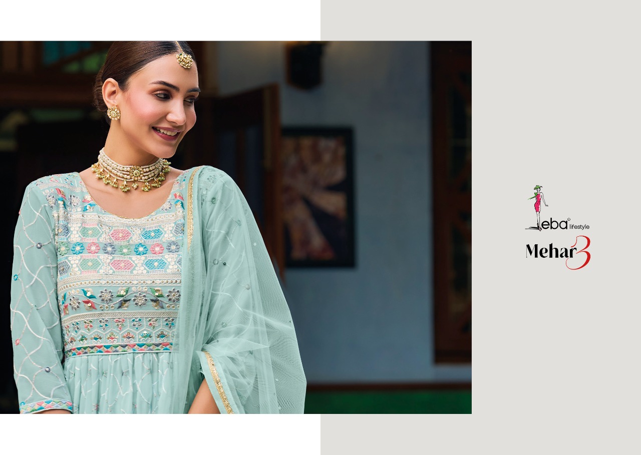 Buy Online Mehar Vol 3 By Eba Lifestyle 4 Pcs of Full Catalogue at Wholesale Price. Looking for Mehar Vol 3 By Eba Lifestyle Full Catalouge at Best Price? Buy Now Mehar Vol 3 By Eba Lifestyle at Wholesale Rate of Rs 7196 with Total 4 Pcs from authroized dealer and supplier of Eba Lifestyle Brand. Cost of Each piece is just only Rs 1799 which is very low and affordable price to resale the product in your retail store ,This is Surat based Wholesale Supplier & Dealer of Eba Lifestyle Brand. Click on Brand name to Know more about Eba Lifestyle Brand's products.Call or Whatsapp on 9898838984 for booking or enquiry