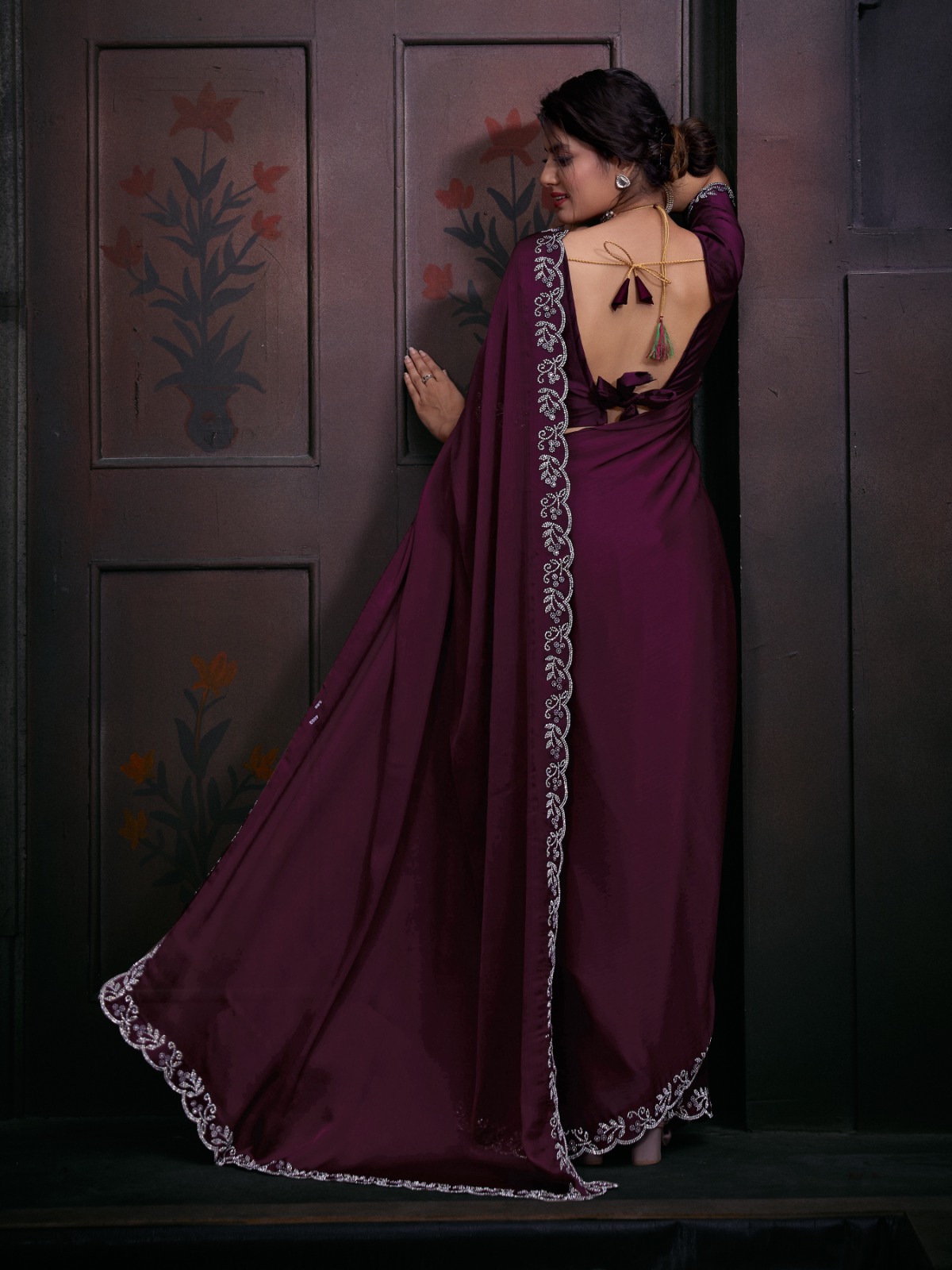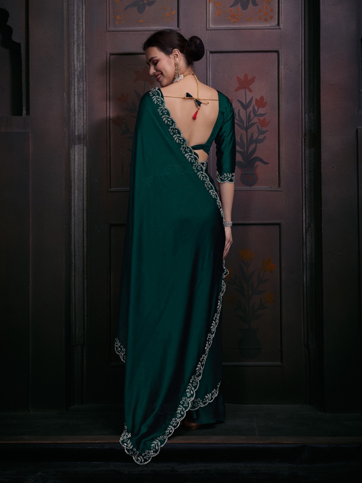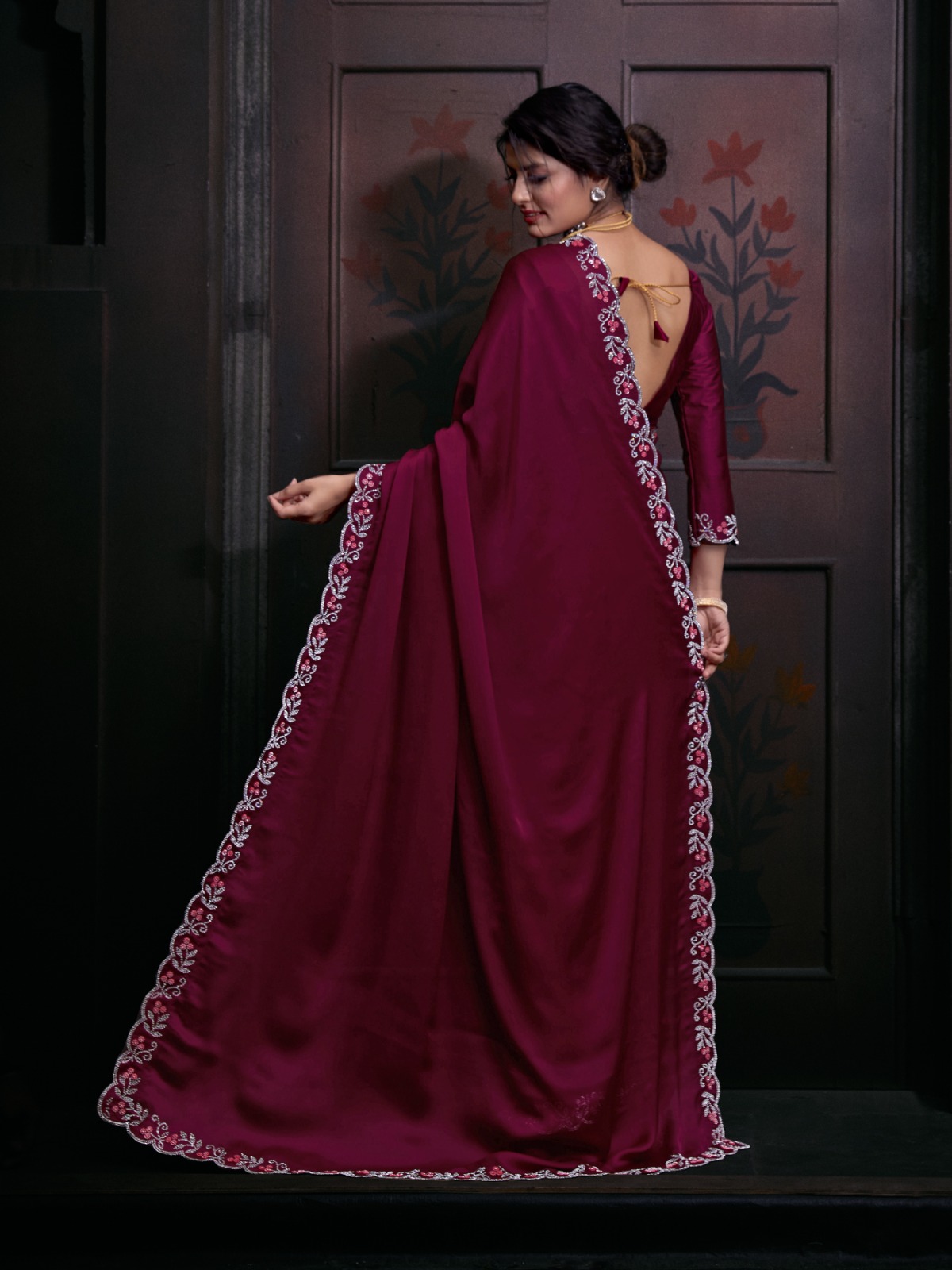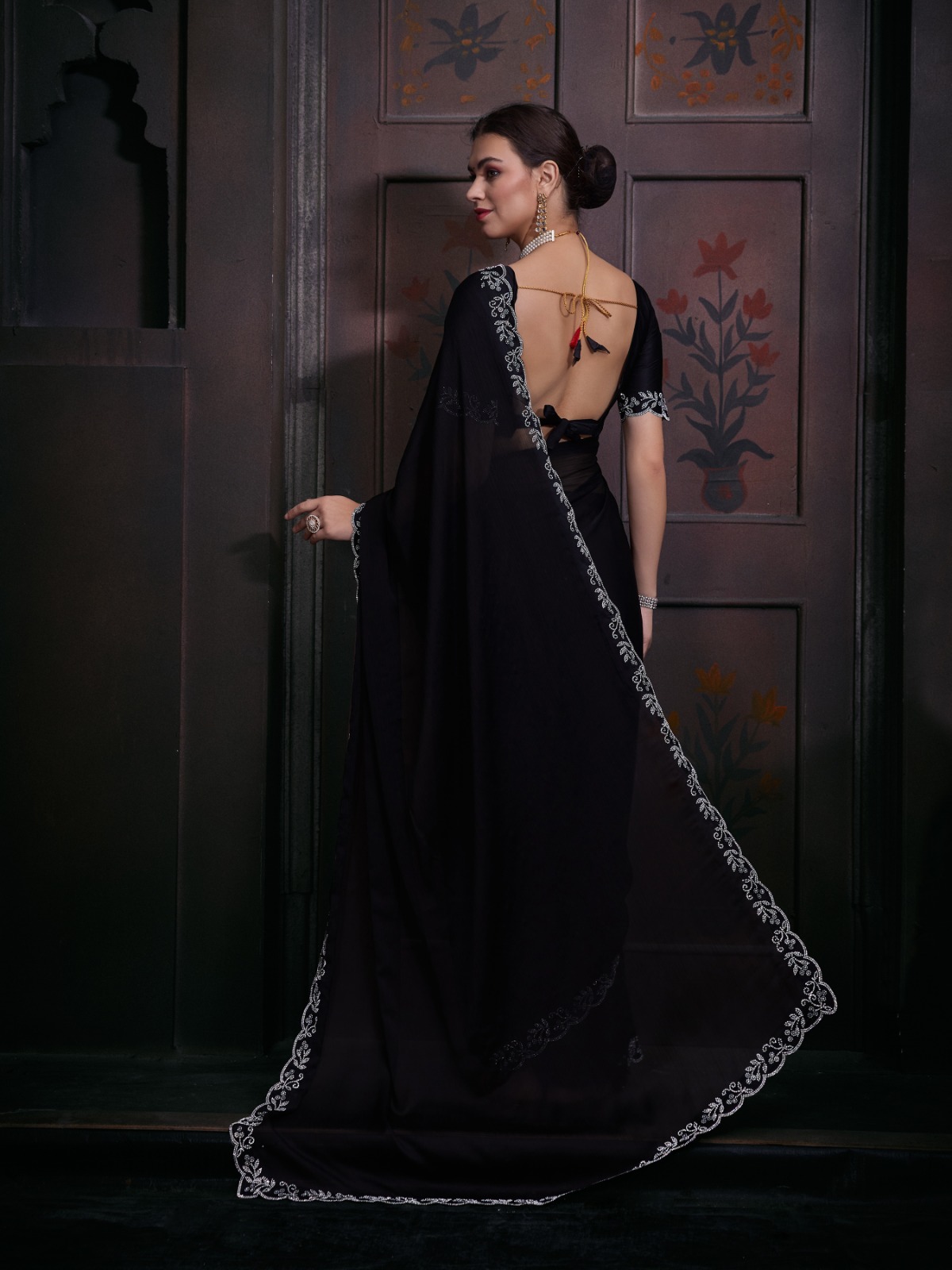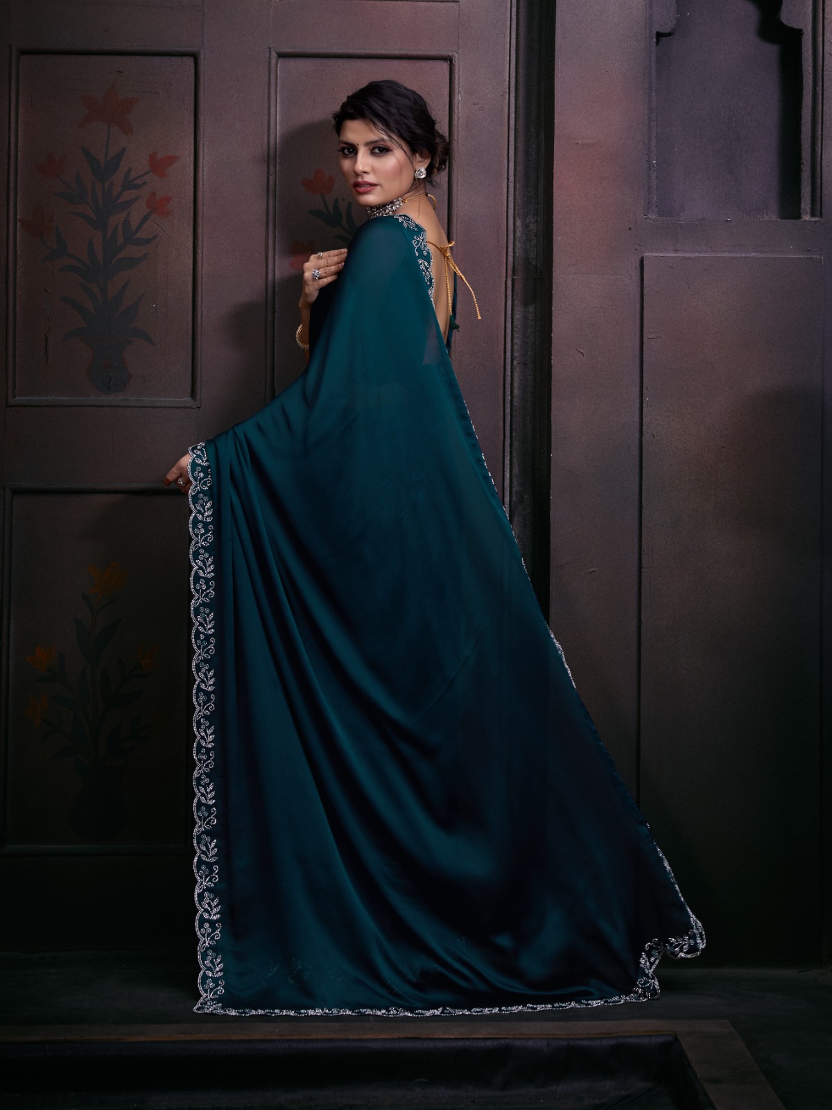 BRAND NAME Â? *MEHEK* D.NO. 752A TO 752F 6 colours Pure Satin Chiffon Blooming Fabric with Heavy Handwork Zircon Cutwork Border Same Fabric Running Blouse with Heavy Zircon Work PRICE Â? 1920/- PER PCS GST 5% EXTRA *SINGLE AVAILABLE* BOOK YOUR ORDER NOW 100+single |