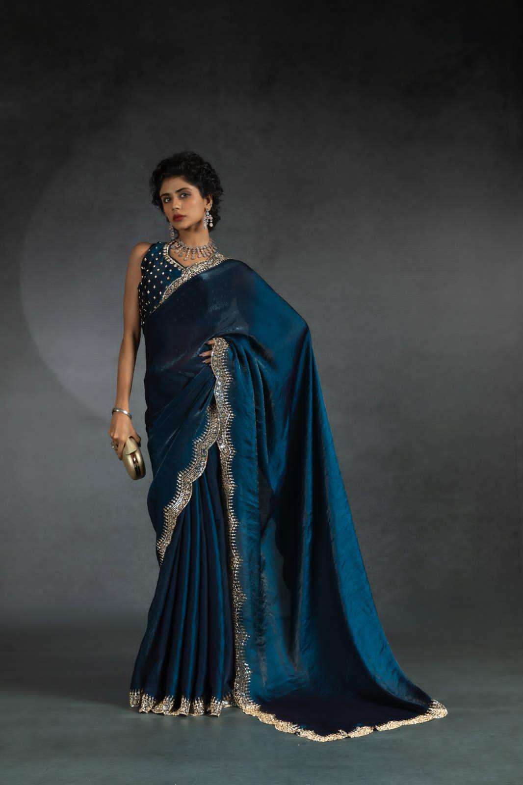 *Two tone satin silk(fandy)hand work jerquen* *Hand work jerquen* *satin silk heavy frount and back BLOUSE*