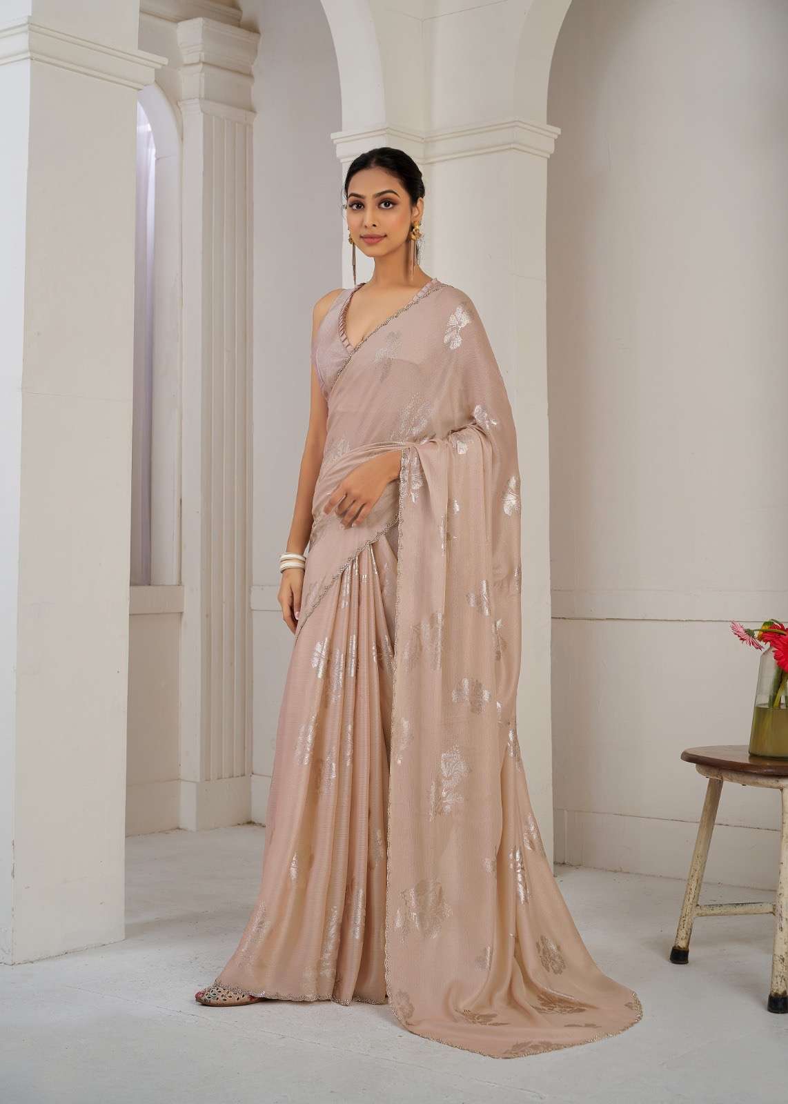 Mehek saree series-1021A to 1021E Nc satin silk foil hand work Jarquen manufacturer surat