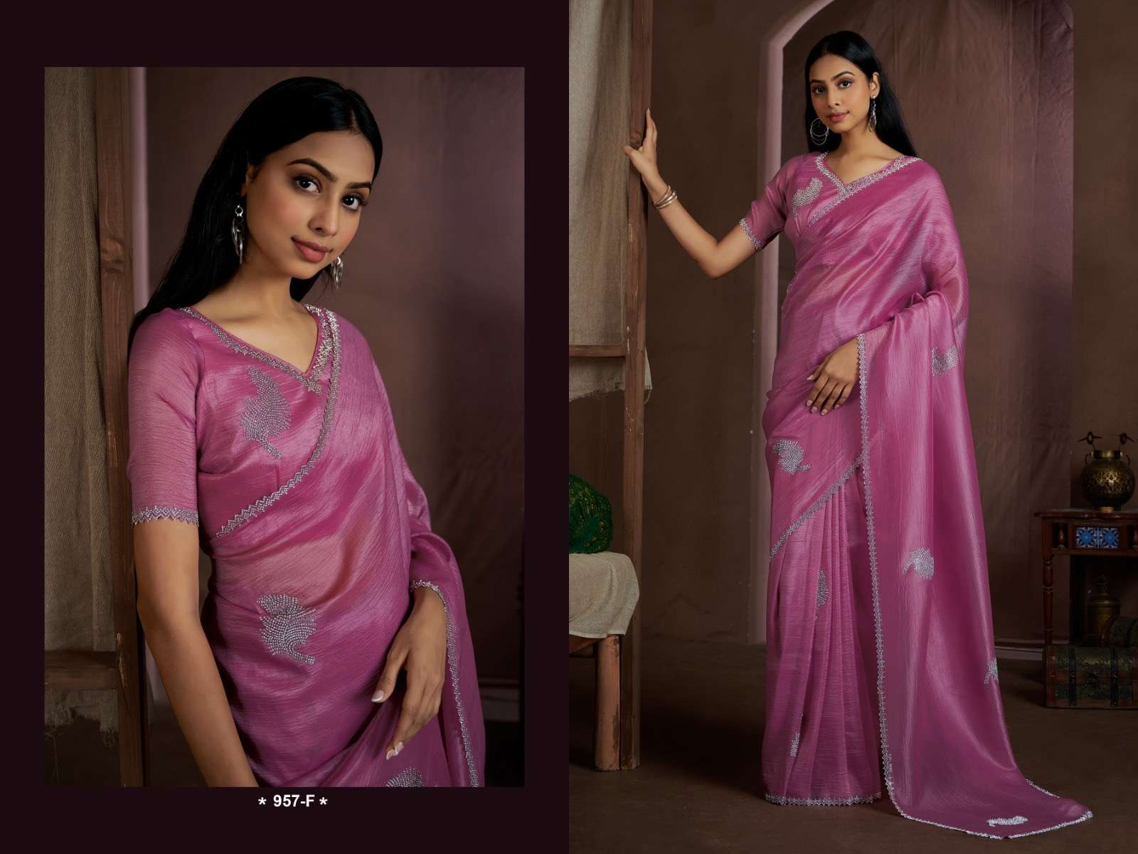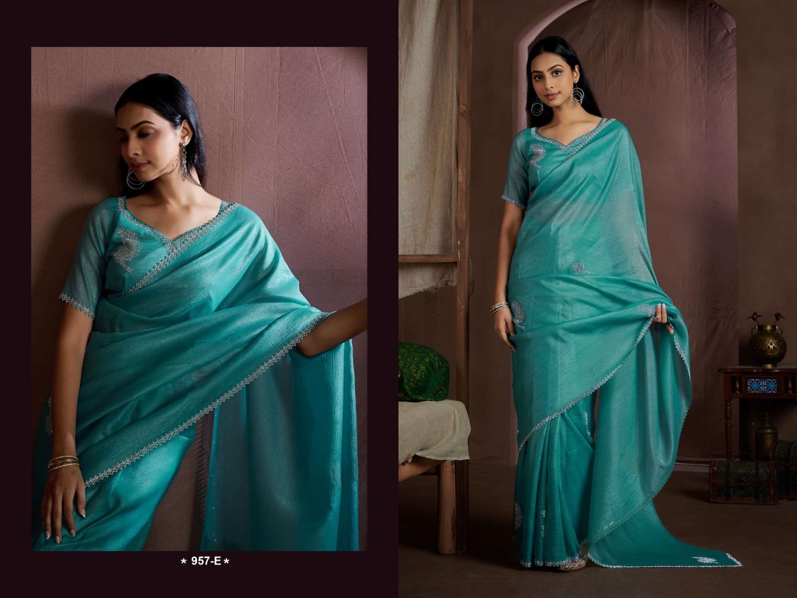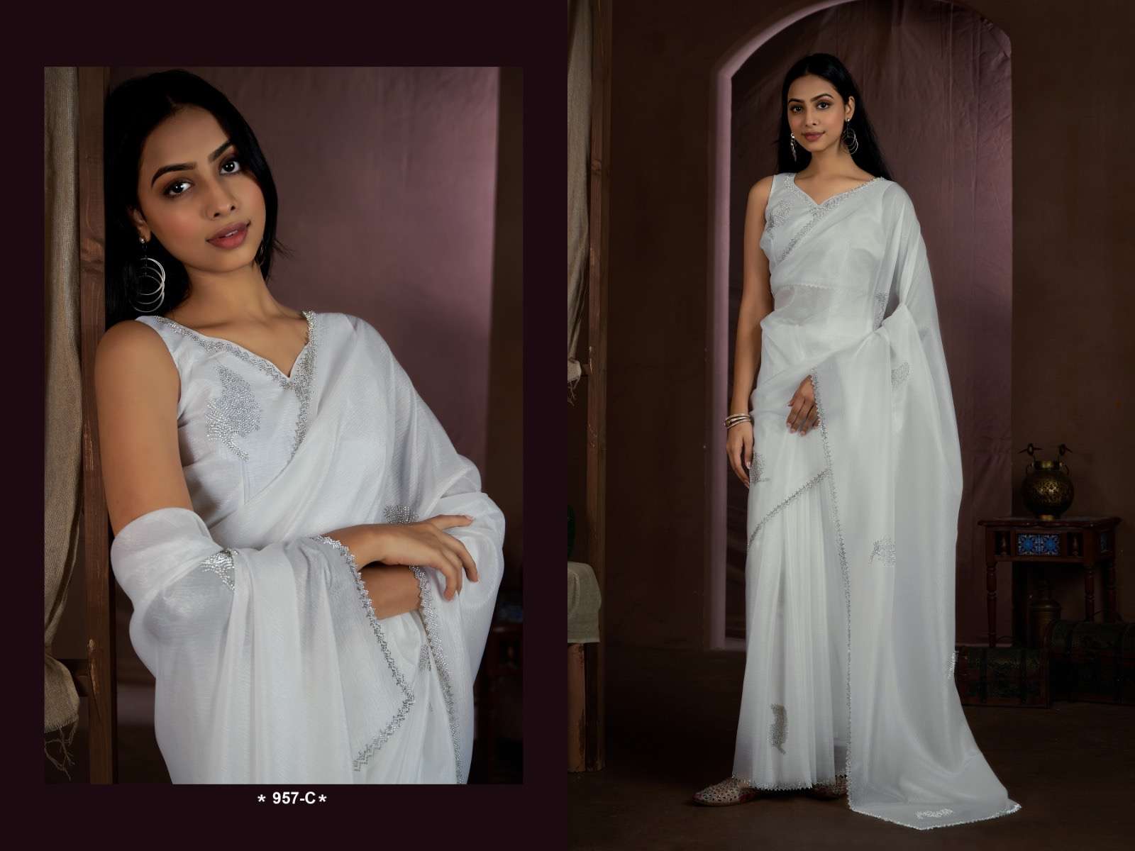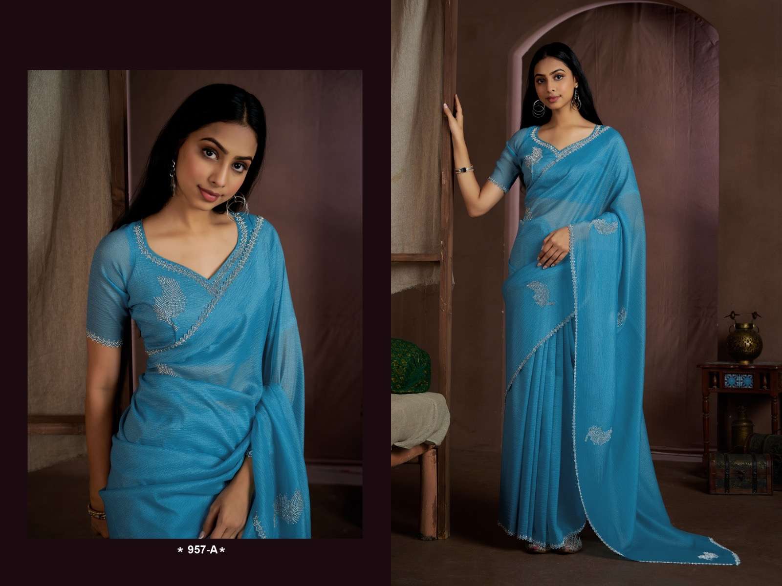 Mehek saree series 957A to 957F pure sindy cruss hand work jarquen saree manufactur surat