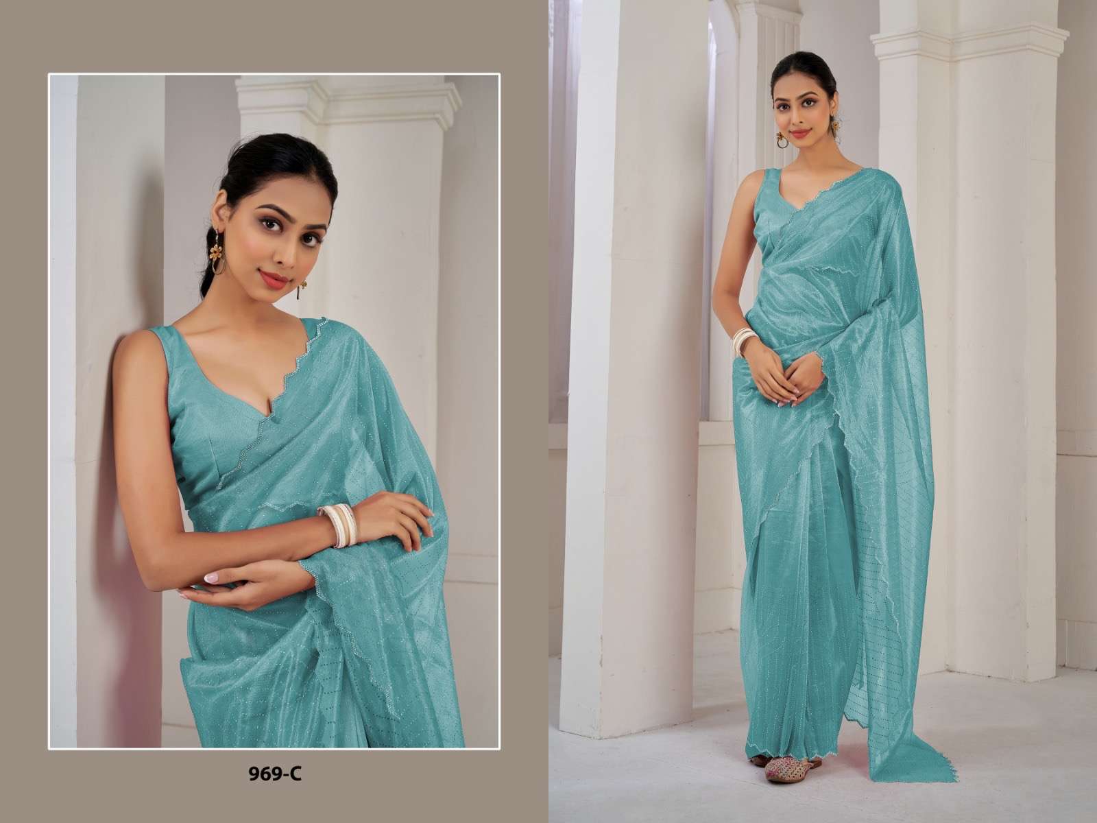 Mehek saree series 969A to 969Q soft organza net hand work jarquen saree manufactur surat